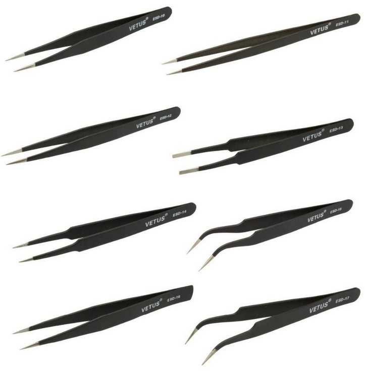 Високоякісний годинникарський антистатичний пінцет, створений для точної роботи. Має багато застосувань, використовуваних і незамінних, у тому числі в електроніці, годинникарстві, косметології, моделюванні, акваріумістиці та в побуті.