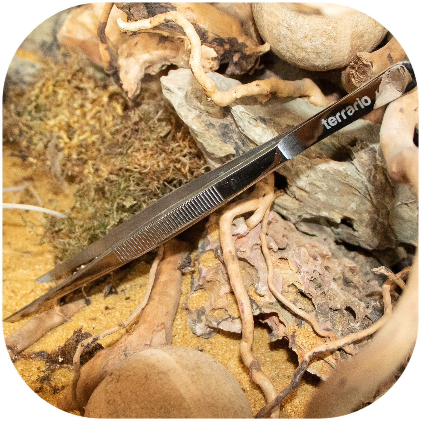 Довгий тераріумний пінцет, водонепроникний. Незамінний для годівлі рептилій і амфібій в кожному тераріумі. Водонепроникна хромована сталь і зубчасті губки пінцета - лише деякі з переваг цього аксесуара. Це необхідний інструмент для кожного тераріуму, а не тільки для агресивних або отруйних рептилій.