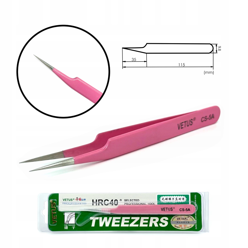 Пінцет VETUS Pink CS-5A з прямими, точно відшліфованими кінчиками та спеціальною канавкою розроблено для точного розділення натуральних вій. Це незамінний інструмент для кожного професіонала, що займається нарощуванням вій.