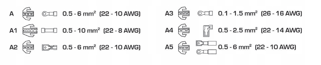 a - призначена для замішування наконечники очей та виделки на кабелях з перехрестям 0,5-6 мм2,