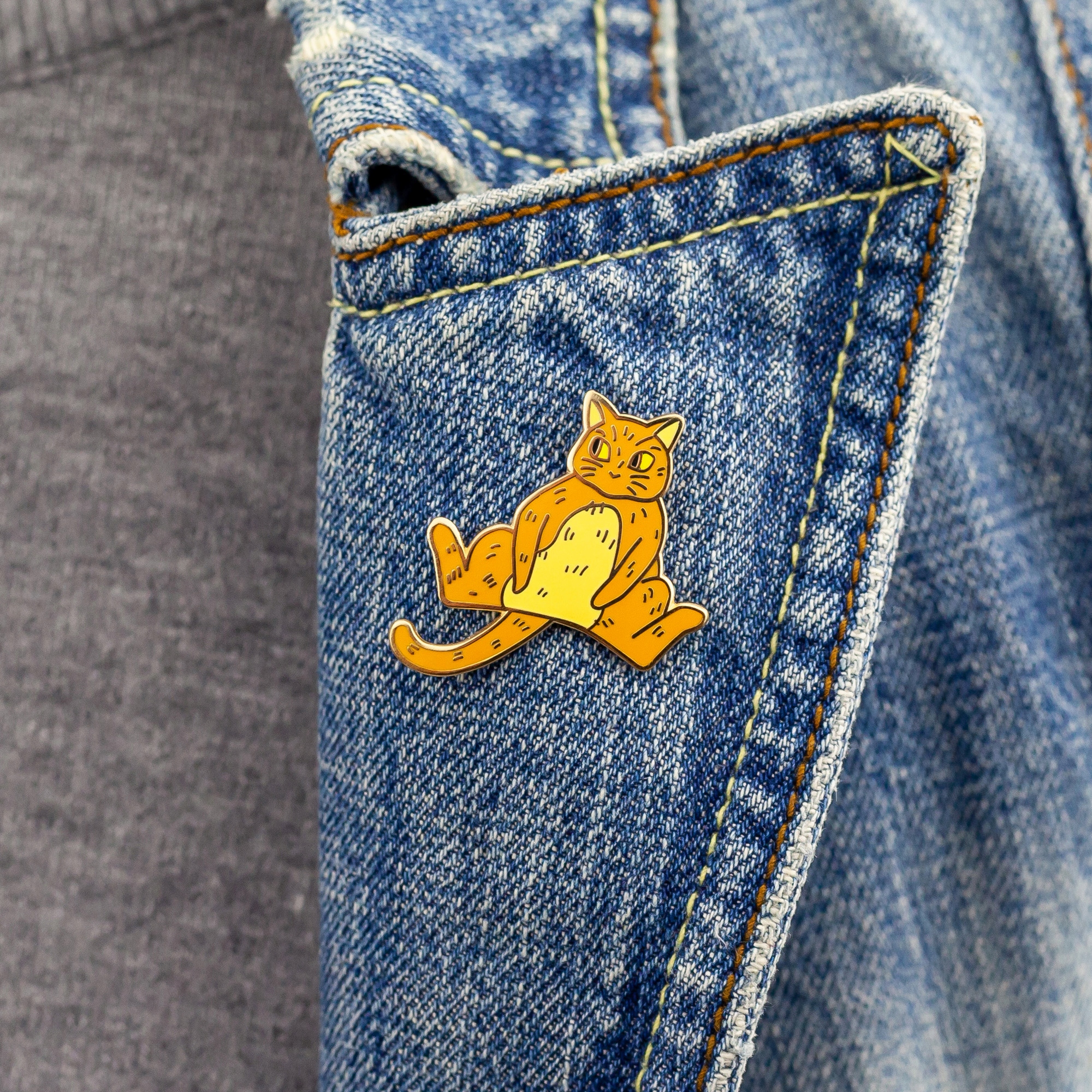 Чарівна шпилька у формі жирного помаранчевого кота з позолоченими контурами 14K