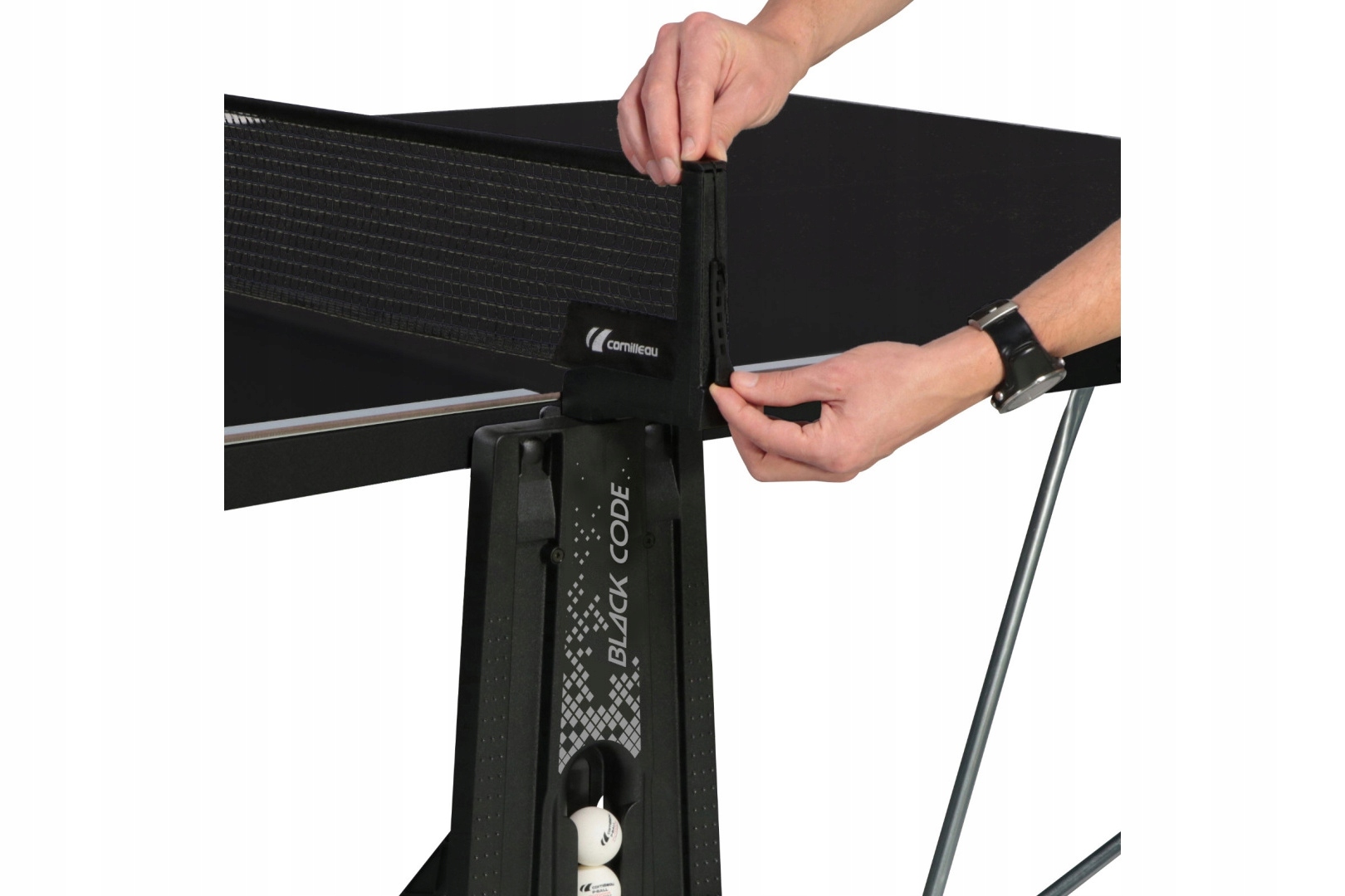 Тенісна таблиця Чорний код - унікальна таблиця з обмеженої серії таблиць cornilleau для зовнішнього використання. Це виглядає чудово, а його профільовані ноги, великі колеса з гальмами, практичні кишені для зберігання ракет і кульок, ергономічна система складання та складання сітки - лише деякі переваги таблиці чорного коду .