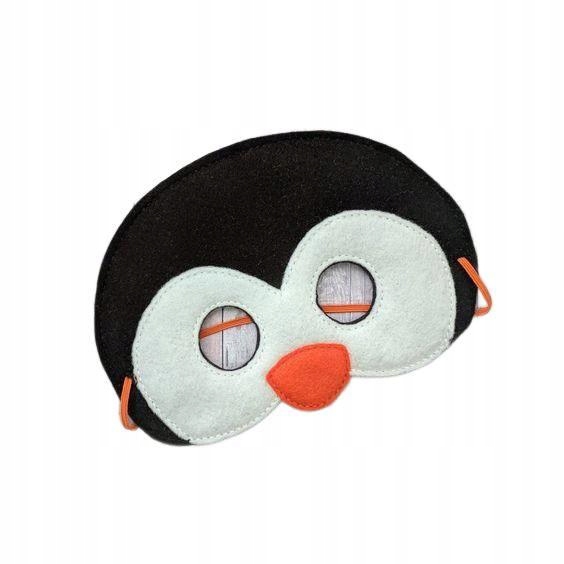 Смішна маска пінгвінів, зроблена з приємного на дотик. Вирізи для очей і злегка вирізана форма лука забезпечують хороший зір і дихання. Ідланана як доповнення до виступу школи та дитячого садка. Маска має еластичну смугу, завдяки якій вона адаптується до голови та дорослих кожної дитини