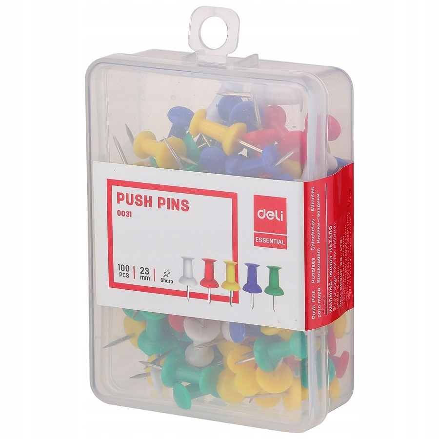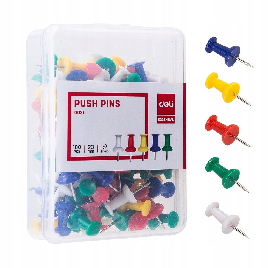 ✨ Упаковка до 100 шт. Булавок DELI розміром 23 мм. Шпильки ідеально поєднуються з нашими пробковими дошками. У комплект входять білі, червоні, жовті, сині та зелені шпильки. 20 шпильок кожного кольору дає вам можливість закріпити важливі документи на дошці з індивідуальними пріоритетами або призначити їх конкретній особі. Булавки упаковані в прозорий пластиковий контейнер, завдяки чому вони завжди будуть в одному місці.