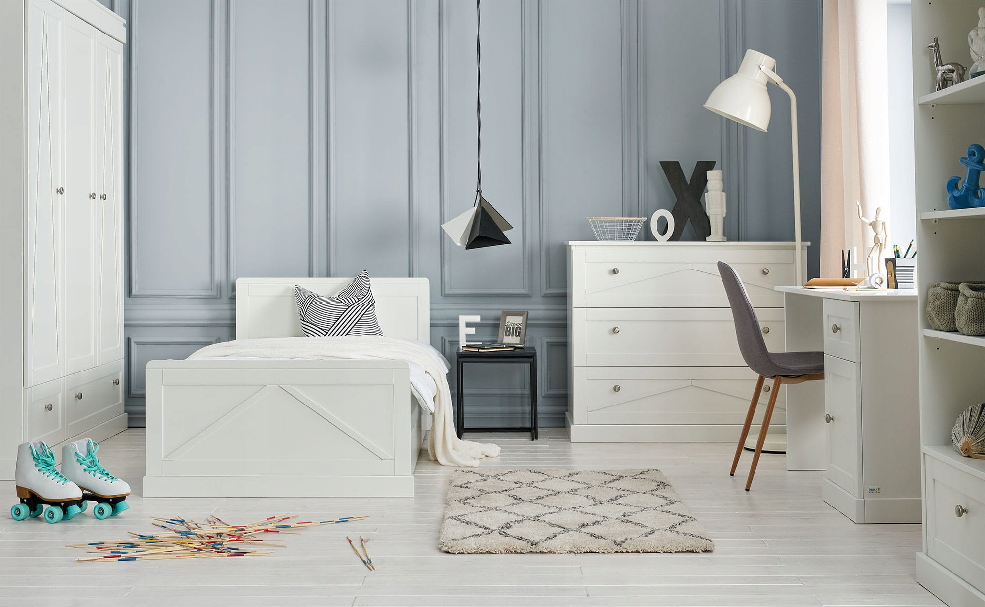 Пініо Марі Комплект 4: ліжко 200х90 + ящик + книжкова шафа + шафа + комод + стіл