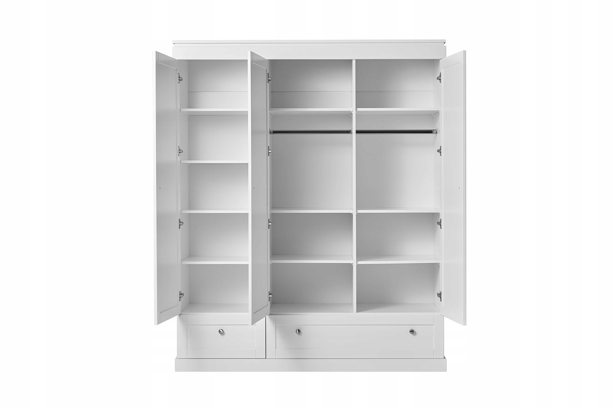 - 3-х дверна шафа має якісну безшумну систему закривання. Всередині шафи є дві вертикальні перегородки і різні можливості для внутрішнього розташування шафи - наприклад, 4 полиці посередині, 2 полиці і штанга для одягу зліва і 2 полиці і штанга для одягу з правого боку. У стандартну комплектацію входять: 4 полиці для середньої частини та 4 полиці та 2 штанги для одягу для зовнішніх частин. Можливе придбання додаткових полиць для зовнішніх частин - максимум 4 шт (до центральної частини не підходять). Середні двері можна встановити з лівого або правого боку.