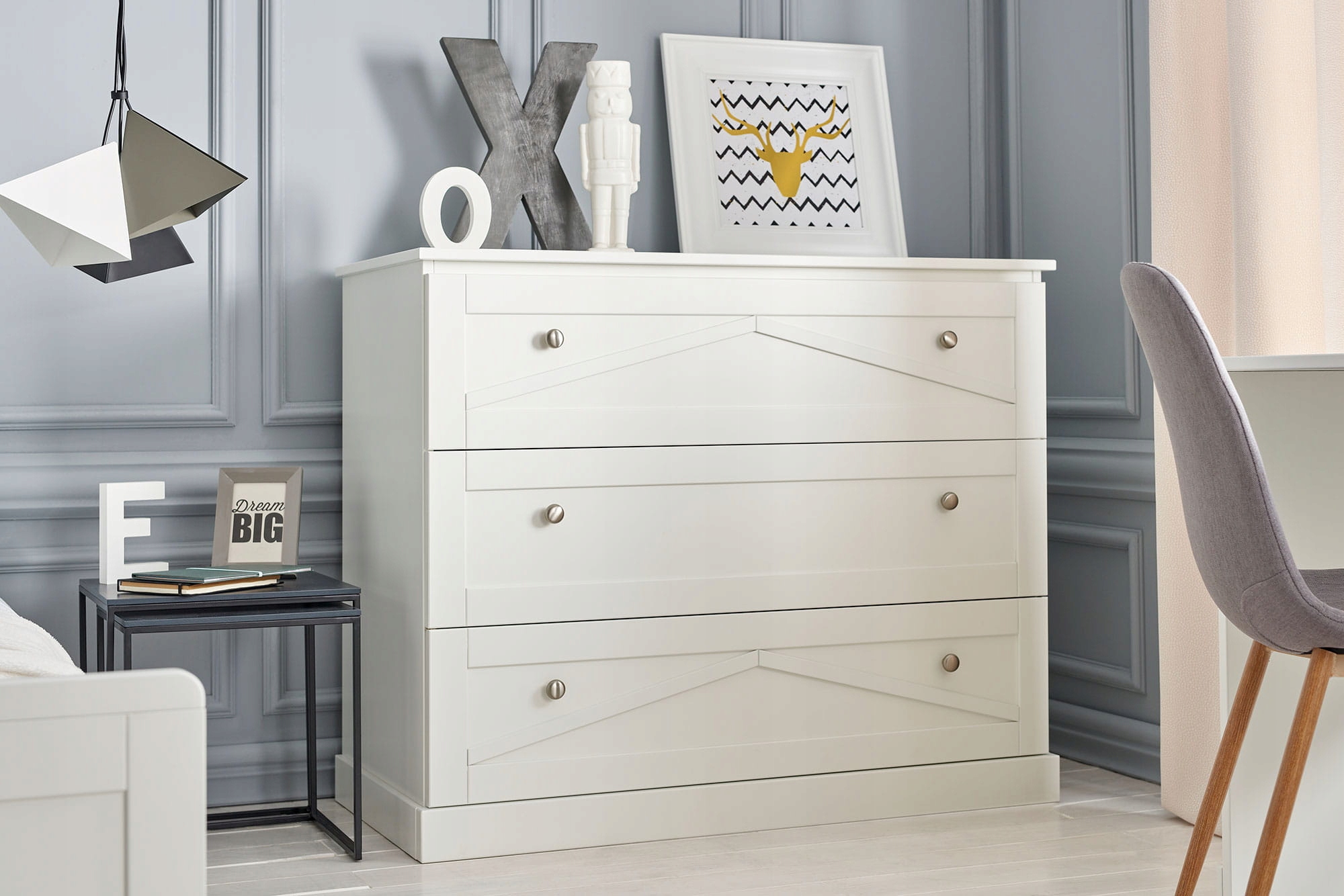- комод має 3 висувних ящика на якісних напрямних з гальмом і самонатисканням.