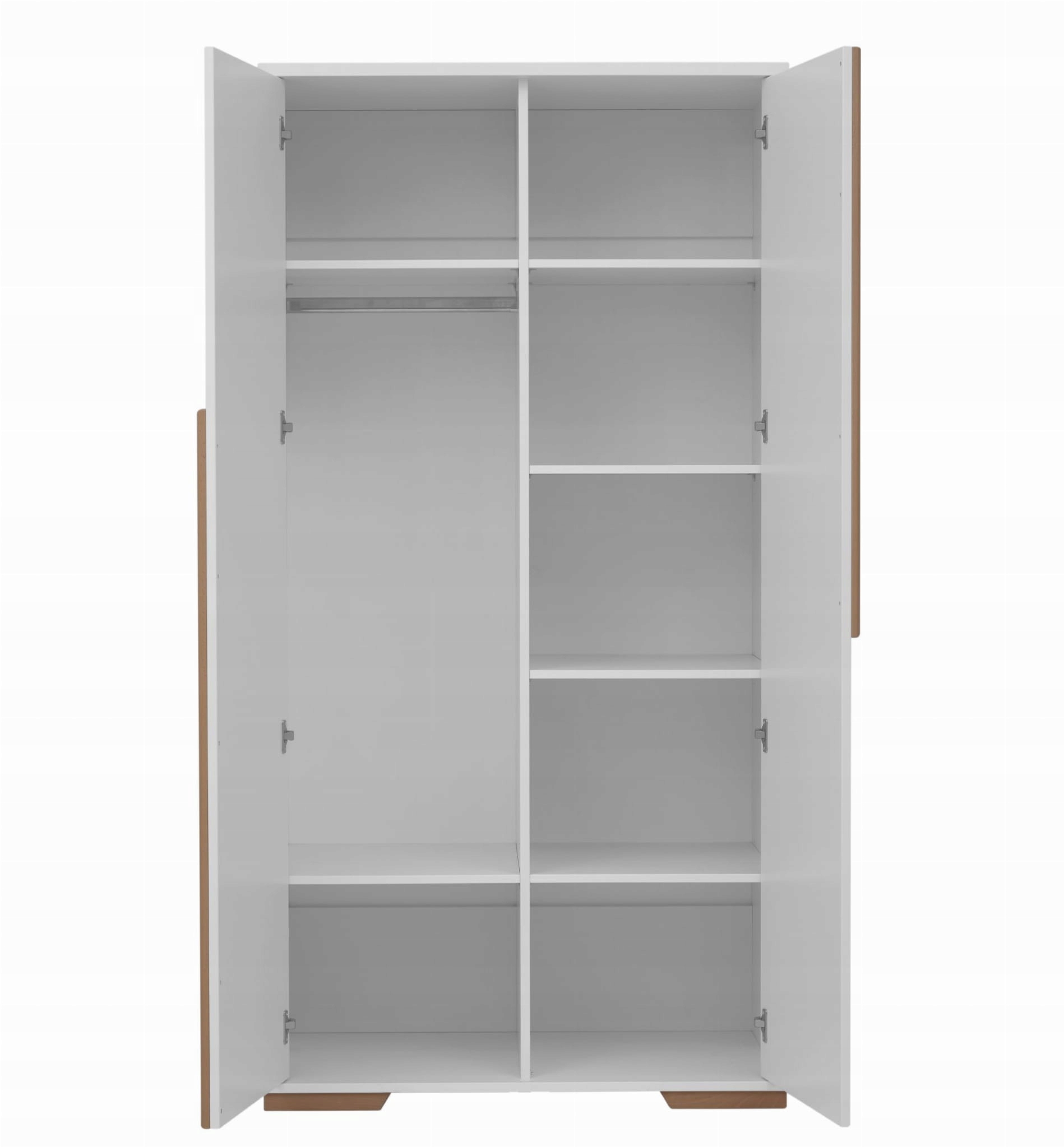 - 2-дверна шафа - містка 2-дверна шафа-купе з колекції Snap з якісною системою безшумного закривання. Всередині є вертикальна перегородка і різні можливості облаштування внутрішньої частини шафи - наприклад, 4 полиці з одного боку і 2 полиці і вішалка для одягу з іншого боку. Стандарт: 6 полиць і 1 вішалка для одягу.