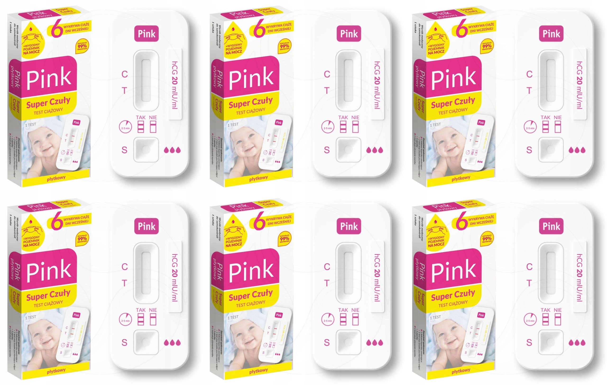PINK СУПЕР ЧУТЛИВИЙ ПЛАСТИНЧАСТИЙ ТЕСТ НА ВАГІТНІСТЬ 99,9% 6 шт