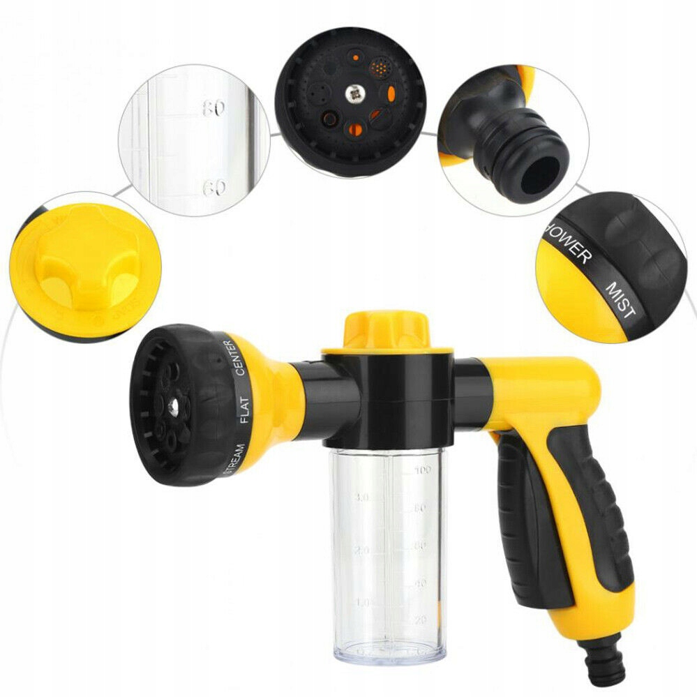 ПІННА НАСАДКА ДЛЯ САДОВОГО ШЛАНГУ З 8 РЕЖИМАМИ І ДОЗАТОРОМ МИЛА ДЛЯ ПОЛИВУ