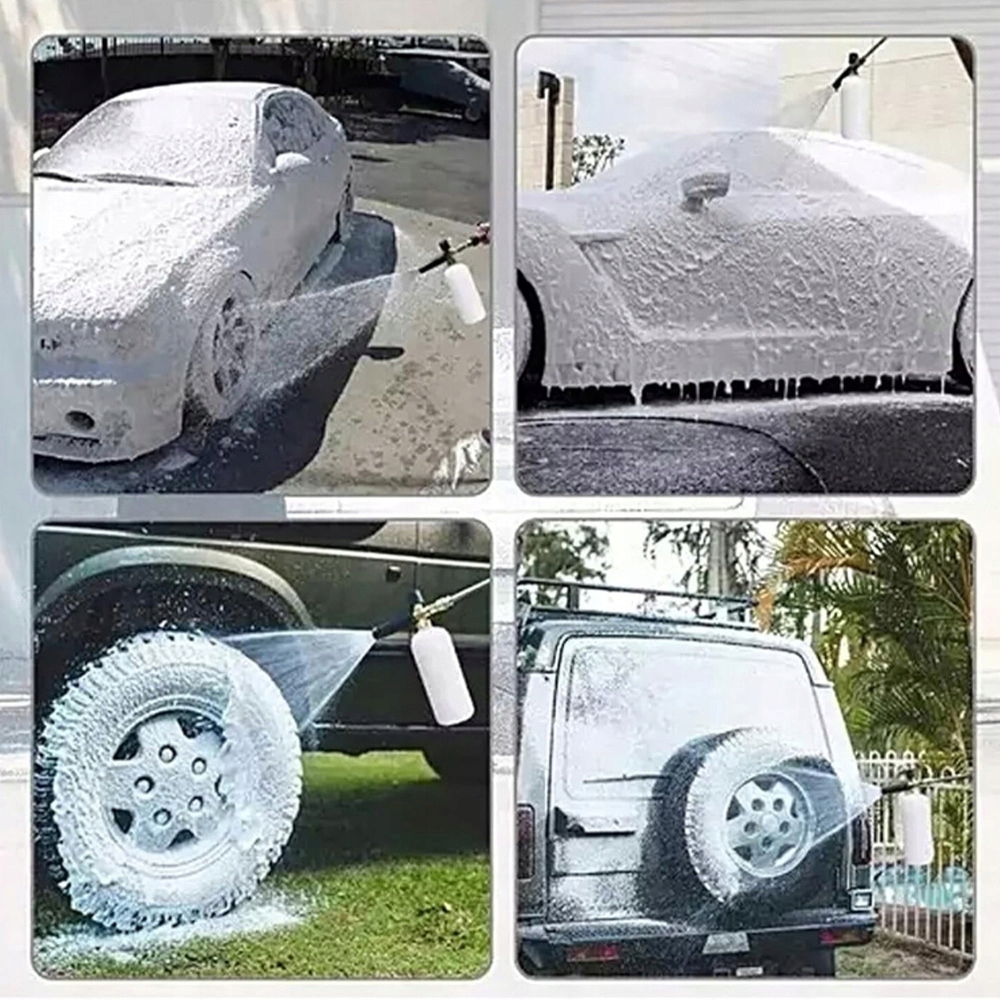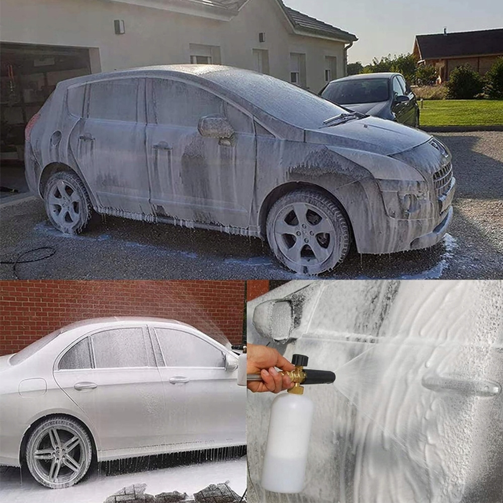 ✅Налийте в пляшку трохи рідкого мила та води, щоб згустити піну. Потім підключіть швидкий з’єднувач 1/4" до мийного пістолета високого тиску. Регульоване сопло забезпечує точне змішування та утворення піни. Поверніть верхню ручку за годинниковою стрілкою/вимкніть, щоб отримати найгустішу суміш, і відрегулюйте сопло для правильного розпилення. Можна використовувати 5 форсунок використаний після того, як покриєте автомобіль піною, а потім очистіть автомобіль знову як новий.