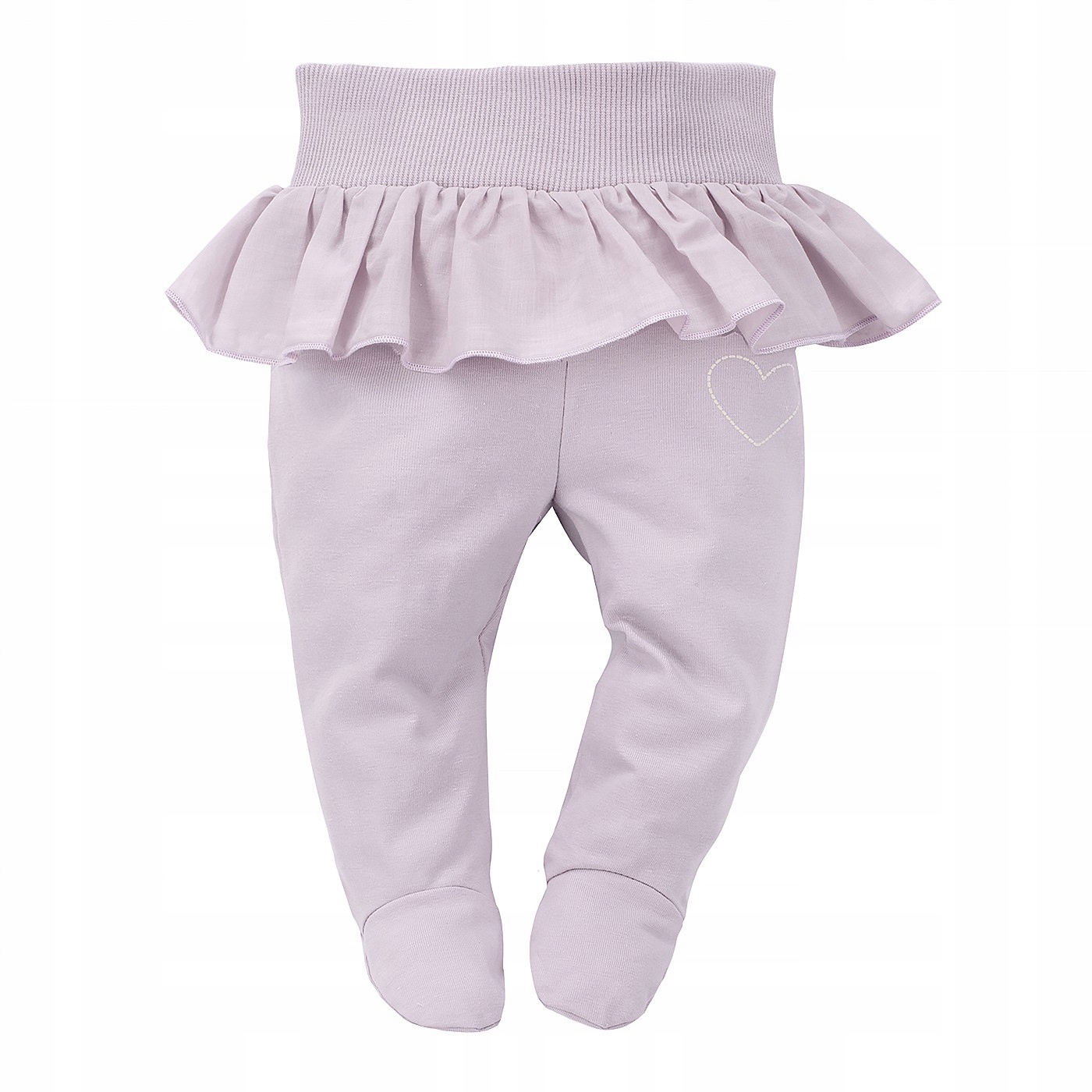 У колекції Шарлотти ви знайдете ще один елемент елегантної версії проряту, яка є наполовину. Щоб додати стиль, вони прикрашені фріллом. На лівій нозі є друк серця. Непрогравне, широке ворота на талії тримає одяг у потрібному місці, але не шкодить дитині в животі. Palpoals має анатомічний розріз, завдяки якому вони не обмежують його рухи. Крім того, над п’ятами ми зшивали спеціальну еластику, що запобігають напівкрап -тапочкам з ніг під час щоденної активності. Palcups є важливим елементом мистоти для новонародженої дитини, він чудово підходить для сну та гри. Друк із серцем