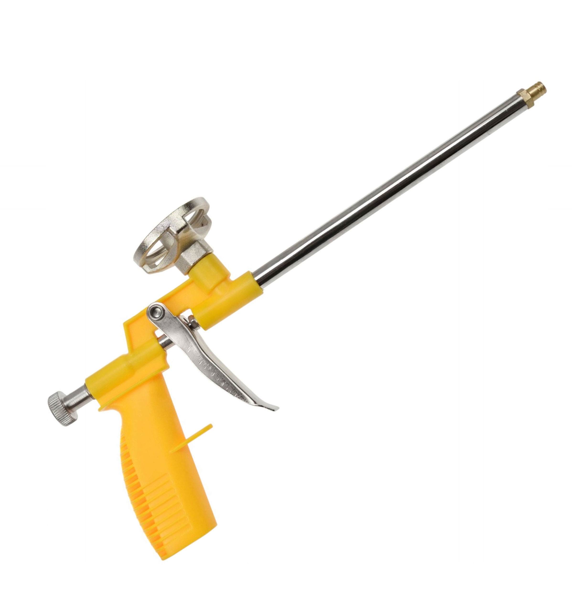 Пистолет для монтажної піни. Пістолет має ручку, яка дозволяє точно дозувати піну. З встановленим контейнером для піни ручка (після закриття) також дозволяє повторно використовувати пістолет до 30 днів без необхідності очищення.