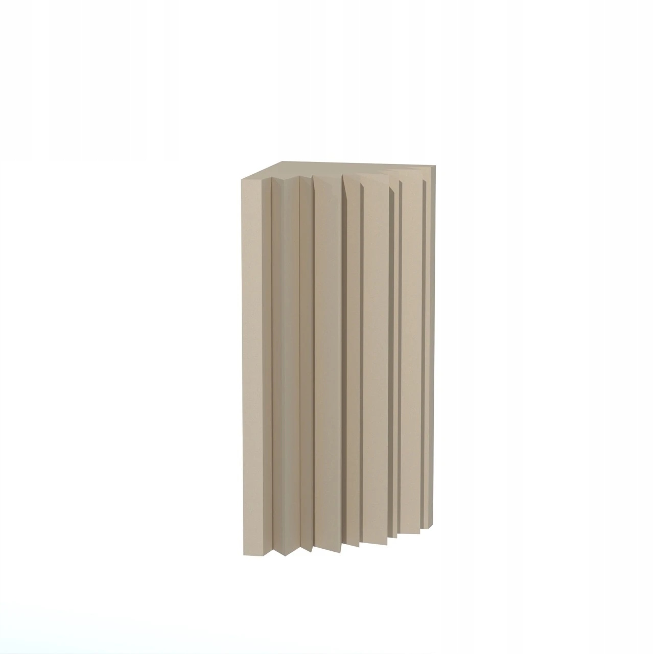Cornertrap FOAMLY Acoustic Foam 5. Pastels - Beige - це спеціалізована панель, призначена для установки в кутах кімнат - місцях, де найчастіше накопичуються звукові хвилі. Його характерний, ритмічний профіль не тільки ефективно зменшує реверберацію та покращує акустику, але також є сучасним елементом дизайну інтер’єру. Cornertrap чудово працює як у професійних приміщеннях, таких як студії звукозапису чи кімнати для прослуховування, так і в сучасних офісах чи домашніх приміщеннях із проблемою відбиття звуку. Виготовлений з високоякісного пінополіуретану - безпечний, не має запаху та стійкий до цвілі. Доступний в сірому кольорі або з більш ніж 30 кольорами на вибір з колекції FOAMLY, що дозволяє повністю підібрати його до будь-якого стилю інтер'єру.