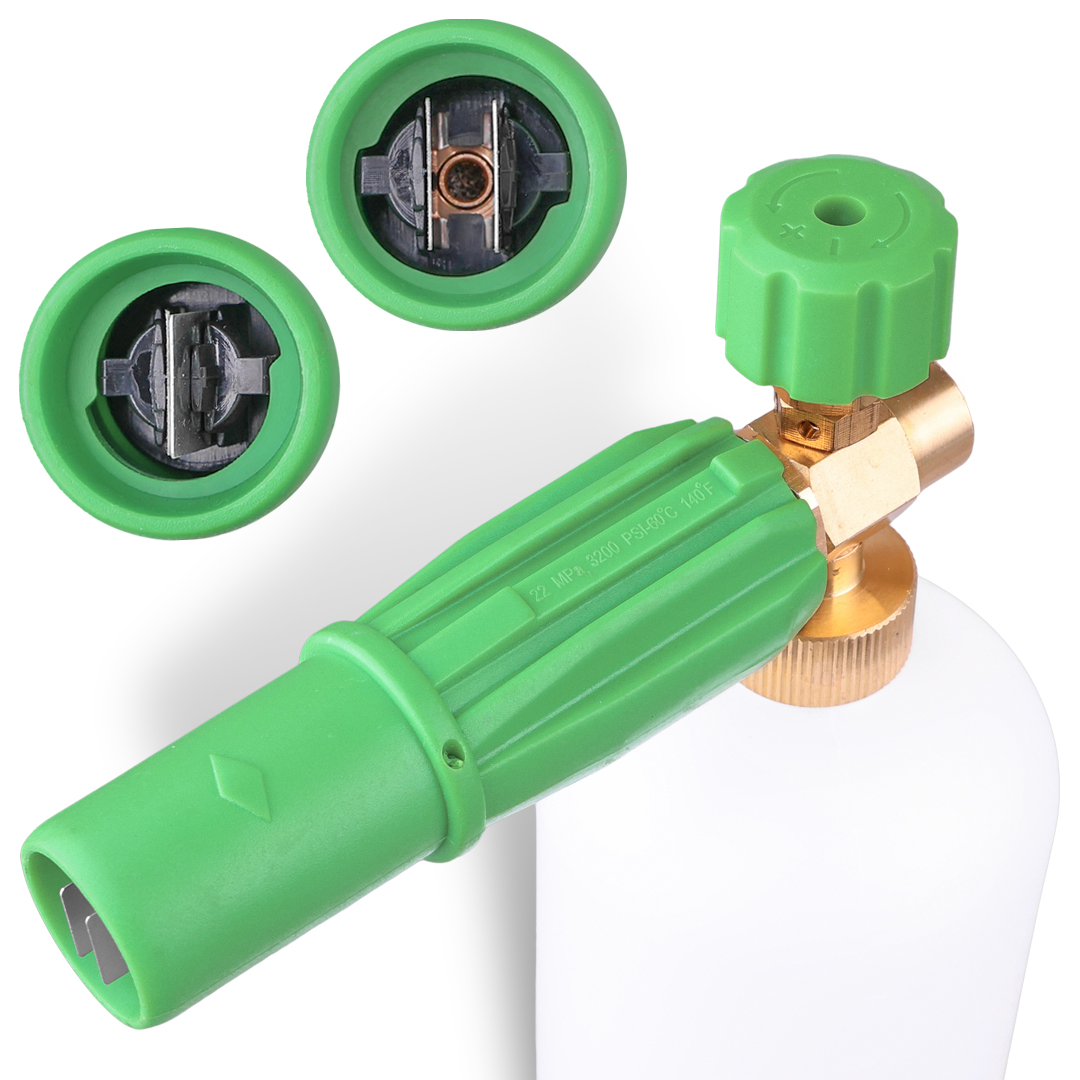 Пініки мають байонетне з'єднання, що використовується в домашніх ухвалах. Ланка ідеально працює з усіма видами рідких очисних агентів. Ємність піни становить близько 1 літра. Прозорий бак з хімії дає можливість контролювати кількість піноутворення. Піна має кут водного потоку з піною та кількістю введення хімії. Латунний корпус гарантує довге і безпроблемне використання. На відміну від стандартних годівниць хімії, розміщених всередині пристроїв високого тиску, піна Techkar дає великі можливості використання всіх хімічних речовин (навіть агресивних). Він встановлений прямо на водній розетці, тому агресивна хімія обходить циркуляцію всередині шайби, усуваючи загрозу пошкодження голови.