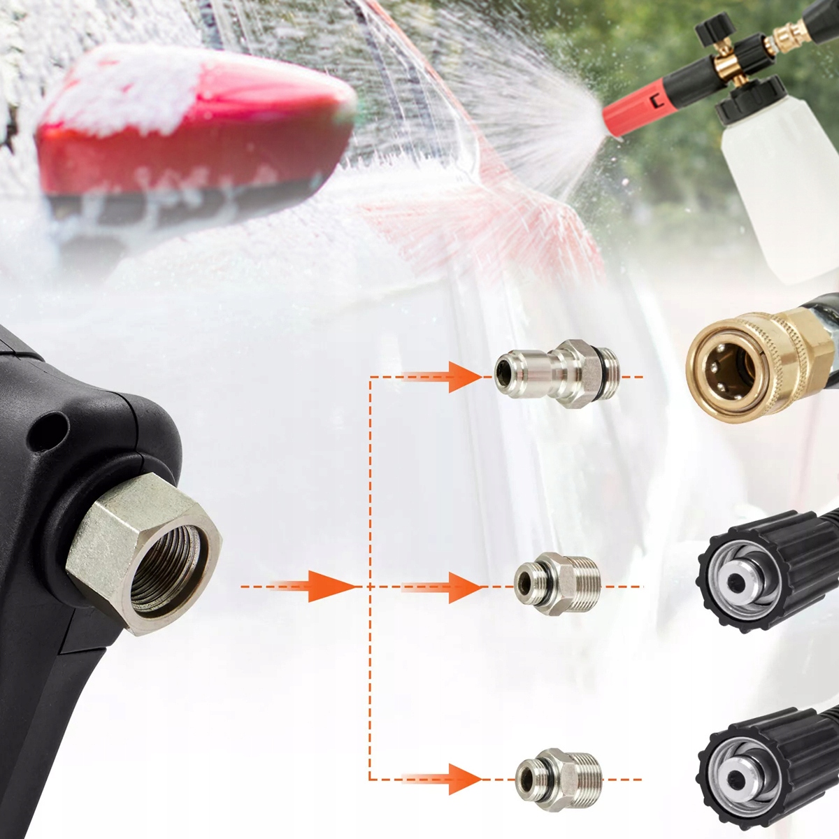4 Він сумісний з швидкими з'єднувачами з діаметром 1/4 дюйма, швидкими з'єднувачами M22-15 мм, M22-14 мм та 3/8 дюймів, що робить його придатним для використання з більшістю шайб тиску.