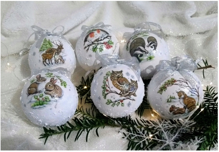 М'яч зроблений з м'якого пінополістиролу, тому ви легко можете прикрасити його блискітками, встромивши шпильки в пінополістирол. Він також чудово виглядає прикрашений стрічками, розмальованим або покритим блискітками. Використання таких технік, як квілінг або валяння, також добре працює. Це виріб, який стане вражаючою прикрасою вашого дому під час Різдва.