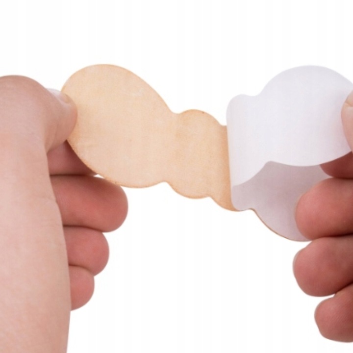 Каблуки мають один бік покритий клей, щоб вони не рухалися у взутті під час ходьби, просто зірвіть захисну плівку та помістіть підборочники в задню частину взуття.