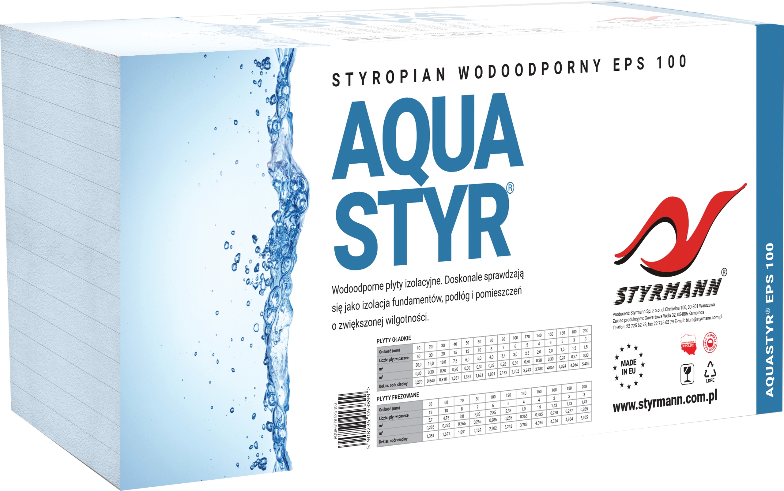 ПІНОПОЛІСТИРОЛ STYRMANN AQUA-STYR EPS100-037 товщ. 10 см - гладкі дошки
