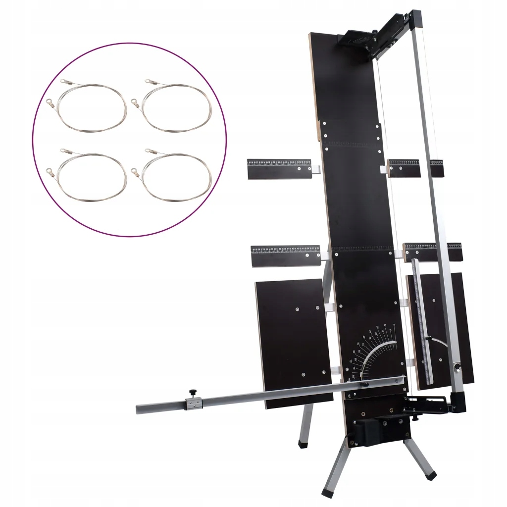 Виготовлений із фанери, різак міцний і довговічний. Підходить для різання полістиролу, полістиролу та пінополістиролу. Максимальна довжина стрижки 137 см, висота 33 см. Крім того, кут різання можна регулювати від 1° до 90° для більшої гнучкості. Ніжки дозволяють використовувати фрезу у вертикальному положенні. Завдяки механізму ковзання на кулькових підшипниках ріжучий елемент плавно та без зусиль ковзає через пінопласт, створюючи чисту та точну лінію різу.