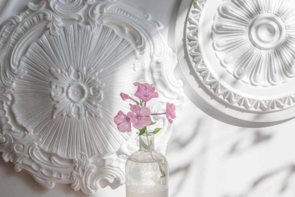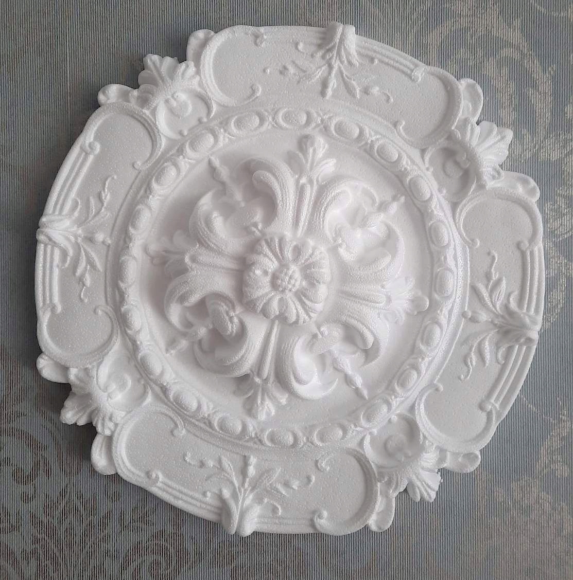 Розетки виготовлені з пінополістиролу (EPS), щільністю ≤ 50 г/дм3 b>, лиття технологія. Ця технологія дозволяє отримувати різноманітні візерунки та декори на поверхні виробів.