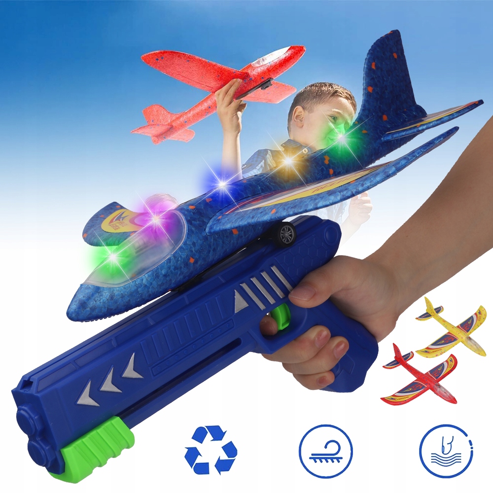 ПІНОПОЛІСТРИЛОВИЙ ЛІТАК 33 СМ ЗІ СВІТЯЩИМСЯ СВІТОДІОДОМ 3 ІГРАШКИ + ПУСКОВИЙ ПЛАНЕР ПОДАРУНКИ ДЛЯ ДІТЕЙ
