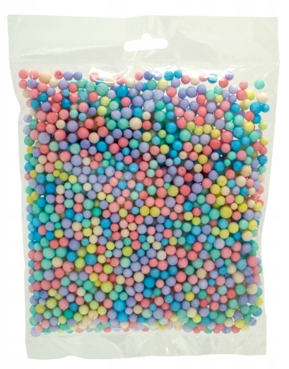 Різнокольорові кульки з пінопласту, кольоровий гранулят, розміром приблизно 8 мм, який можна використовувати різними способами, наприклад, як наповнювач для подарункової коробки або як прикрасу для приклеювання листівок і запрошень. Чудова творча розвага для дітей, яка розвиває ручні навички. Вони чудово підійдуть для будь-яких видів творчих і декоративних робіт, як вдома, так і в художніх студіях.