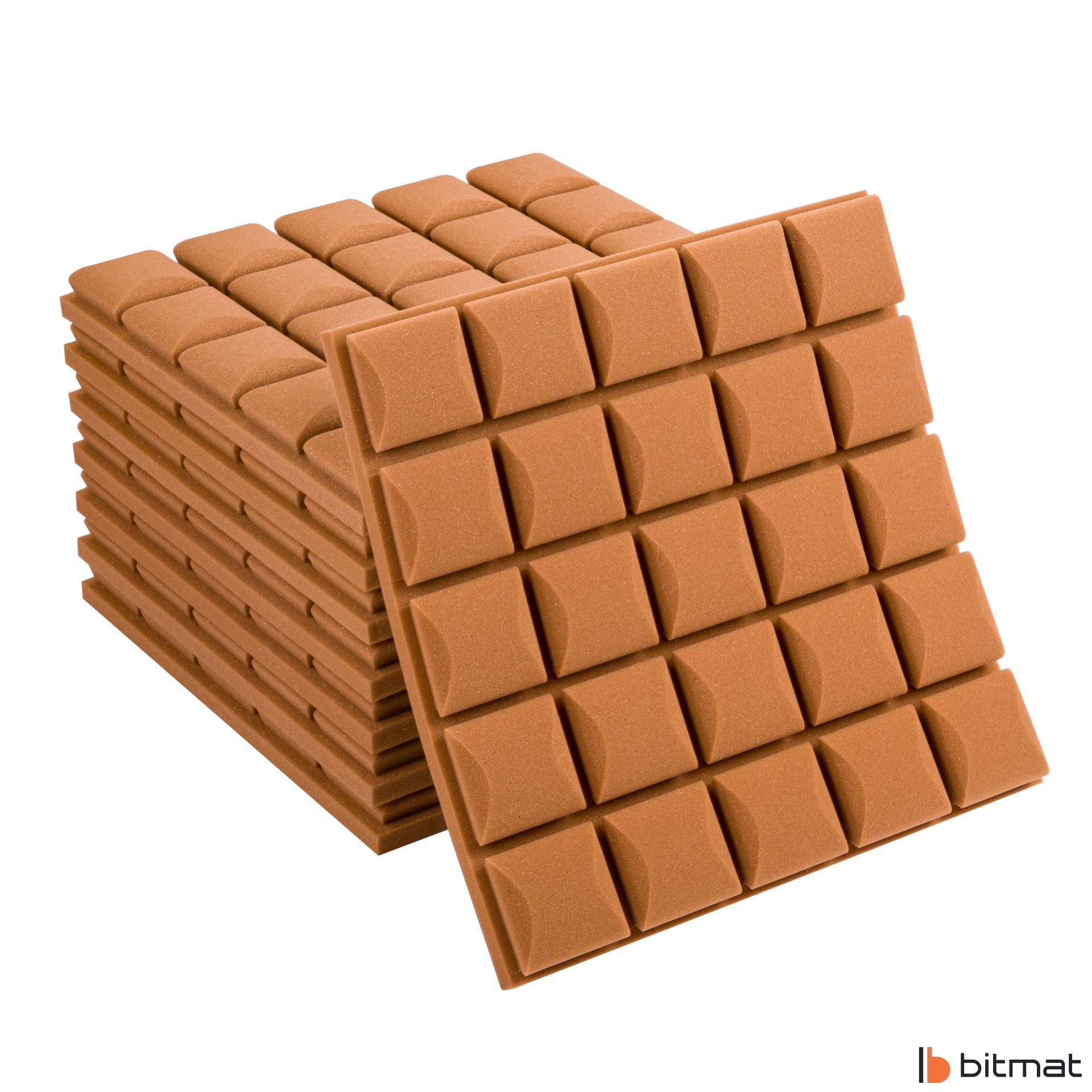 1x опукла акустична панель-куб без клею, розміри 50 см х 50 см, товщина 5 см, коричневого кольору