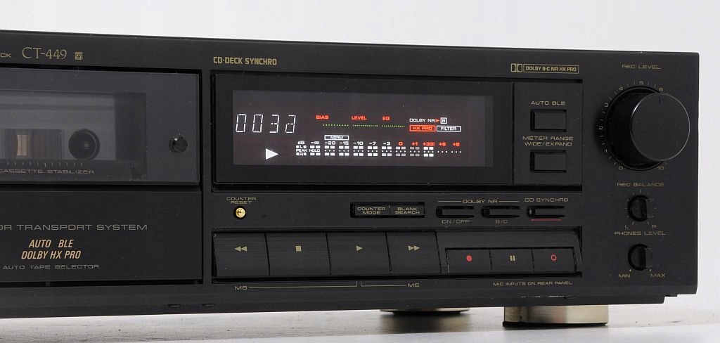 Чудовий, надійний магнітофон для любителів аналогового звуку! Гарантія якісного звуку! Pioneer CT-449 - це фантастичне обладнання, чудовий динамічний звук якого зворушить кожного. Hi-fi компоненти компанії - унікальні пристрої, призначені для вимогливих клієнтів. Належність до сімейства Pioneer - гарантія відтворення звуку на найвищому рівні.