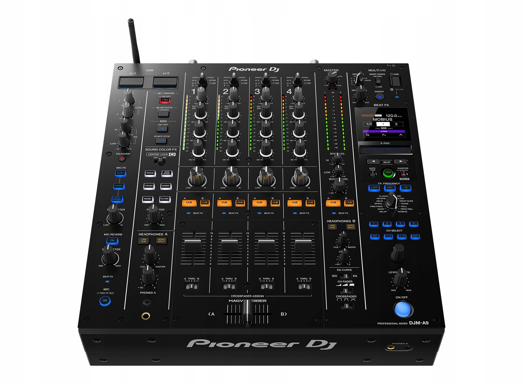 Pioneer DJM-A9 is a completely new series of installation mixers Pioneer DJ and inherit Від флагманського змішувача DJM-V10. Обладнання A9 - це ще одна еволюція багаторічної роботи над обладнанням DJ та співпраці між професійними ді -джеями, що пропонують найвищу можливу якісну роботу в середовищі DJ/Live та повну інтеграцію програми з програмним забезпеченням DJ та безпрецедентними варіантами управління. Змішувач DJM-A9-це чотириканальний блок з вбудованим аудіо-інтерфейсом 2 X USB, який для повної інтеграції з програмним забезпеченням DJ у цьому спеціалізованому Pioneer Rekordbox DJ та нещодавно Serato DJ Pro. Музичні та перероблені повзунки каналу та Crossfader Magvel Fader дозволяють більш плавне змішування та подряпин. Змішувач також містить 14 ефектів FX Beat, включаючи 3 нові, та вдосконалений мікрофонний розділ з фантомним джерелом живлення та 3 -ма мікрофонними ефектами. DJM-A9 має два USB-порти для плавного перемикання між ді-джеями та введенням Bluetooth/MD для відтворення пісень з мобільних пристроїв. Програма етапу дозволяє переднім командам віддалений моніторинг та контроль функцій через iPad. DJM-A9 сумісний як з звукозаписом, так і з Serato DJ Pro. Новий звуковий колір fx; Рівняння слухання кабінки; Два секції для 1 навушників та 2 навушники; і багаторазове введення/виведення, що дозволяє доставити та повернутися до заданого каналу змішувача; Внутрішній годинник MIDI, який дозволяє блокувати USB -зовнішні пристрої за допомогою кнопки запуску/зупинки; Новий Beat FX: Mobius і Tripple Filter. Додаткова система вершників пропонує доступ до програми Stagehand, який дозволить керувати та бездротовим розумінням від рівня мобільного пристрою в роботі нового змішувача DJM-A9 та гравця CDJ-3000. X-PAN з можливістю вибору частоти полювання/середини/привіт, на який вони будуть застосовані. Крім того, розділ Multi/IO дозволяє надсилати будь -який канал на підключені зовнішні пристрої FX, включаючи, наприклад, iPad з програмами. Крім того, користувачі можуть використовувати чотири фоно входи, підтримку DVS та над усіма двома USB -розетками з можливістю підключення ПК/Mac. Цифрове з'єднання: забезпечує ретельне відтворення високоякісної музики