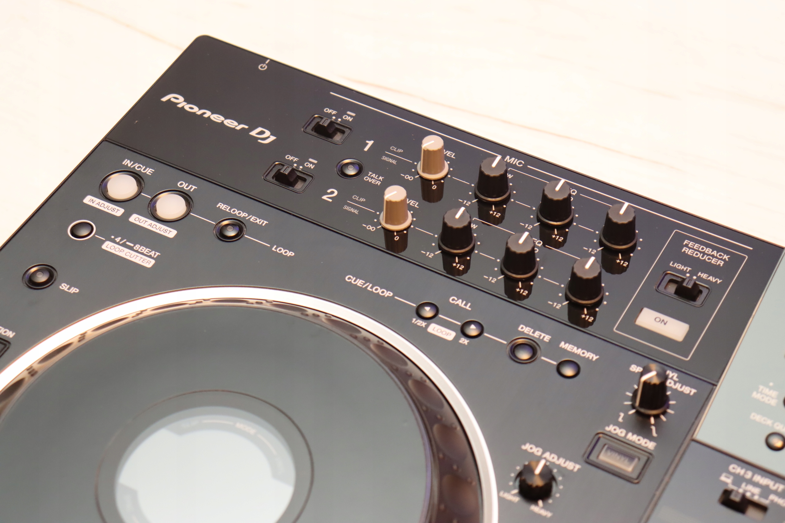 останньою 4 -канальцею в одній дюйовій частині. Це означає, що пристрій може працювати як окремий гравець USB (робота в 2 каналах), але також як контролер програмного забезпечення DJ, і адаптується для роботи з DJ DJ та Serato DJ (робота в 4 каналах). У XDJ-XZ ми знаємо один порт USB B та два USB-порти та дозволяючи одночасній роботі працювати до трьох ді-джеїв одночасно. Pioneer XDJ-XZ пропонує контрольний аудіо змішувач із входами Phono / Line (2 канали змішувачів з числами 3 та 4) Beat FX та звуковим кольором FX, Kola Jog Koli, відомими з пристроїв, таких як CDJ-200NXS2 / CDJ-3000 та OLED Touch, відомі з пісень CDJ Series, Playlists ... пристрій має два треків Microphone. Нижній розділ колоди пропонує 8 прокладок, які подають, серед інших, такі функціональні можливості: гаряча кия, бити петля, ковзання петлі та бити стрибок