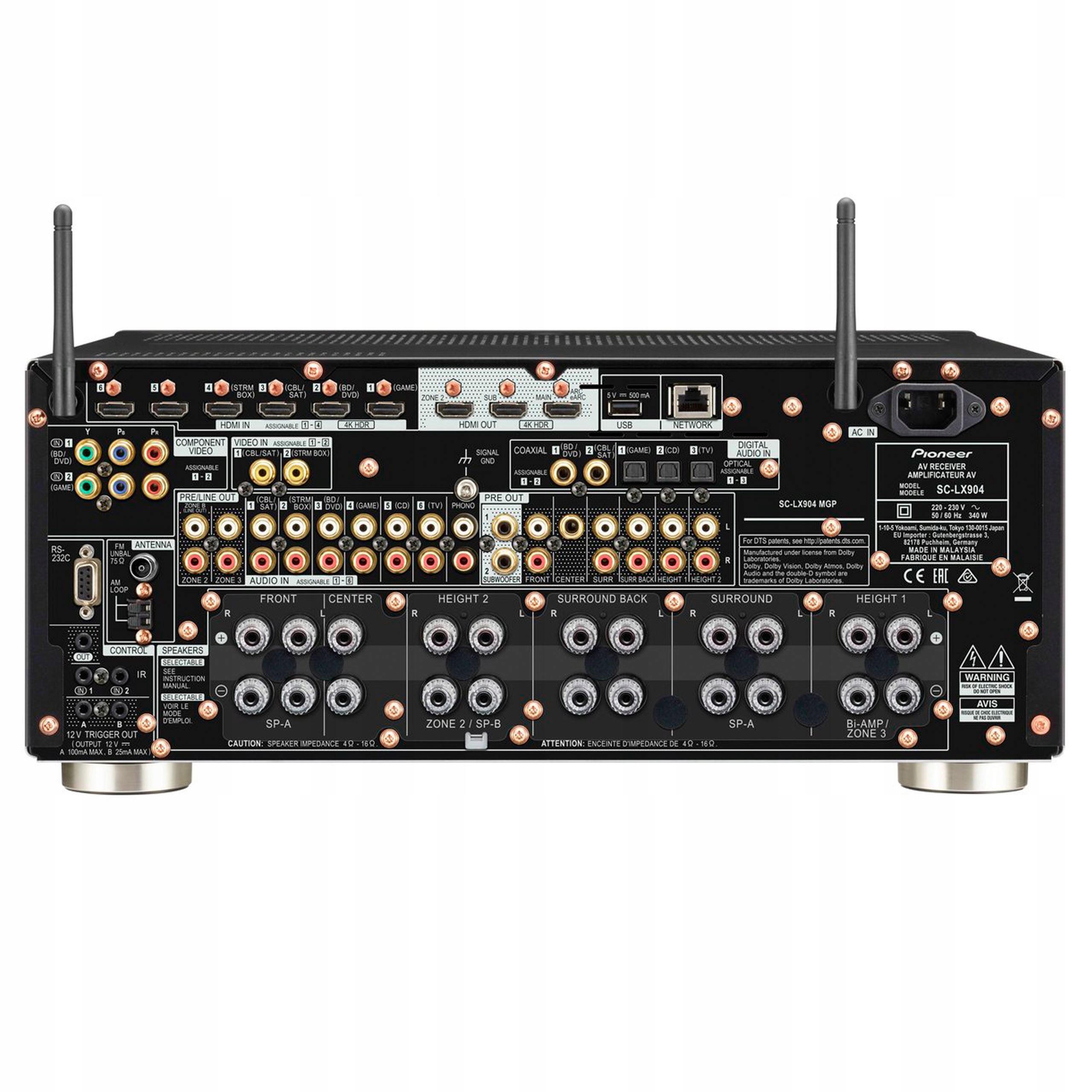 Приймач Pioneer SC-LX904 сумісний із конфігураціями динаміків Dolby Atmos і DTS:X 7.2.4, 7.2.2 і 5.2.4. p>