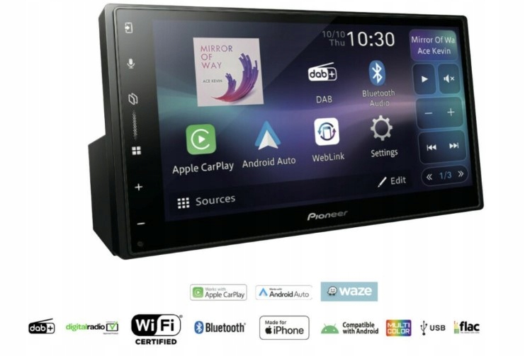 оснащений мультимедійним програвачем Wi-Fi з 6,8-дюймовим ємнісним сенсорним екраном без приводу та здатністю легко підключати смартфон. Забезпечує підтримку сумісних програм, включаючи Apple Carplay та Android Auto (провідний або бездротовий) та дзеркальне відображення USB (Android). Bluetooth, DAB/ DAB+Digital Radio, 13-діапазонний графічний коректор, розширені аудіо функції та найвища якість звуку.