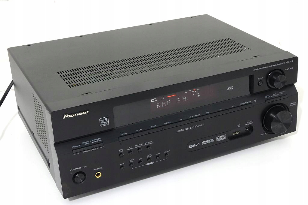 Чудовий ресивер Pioneer VSX-516 для домашнього кінотеатру - 6.1!!! Це дуже хороше обладнання, з гарним і приємним звуком. Оснащений усіма необхідними декодерами для домашнього кінотеатру (в тому числі: Dolby Digital EX, Dolby ProLogic IIx, DTS 96/24, DTS ES, DTS Neo:6, WMA9 Pro) і безліччю функцій і налаштувань, які зроблять використання більш приємним і ефективний. Крім того, ви можете точно налаштувати й оптимізувати звук із динаміків домашнього кінотеатру та отримати звук студійної якості завдяки функції MCACC – 5-смуговій системі калібрування звуку. Крім того, він оснащений USB-роз’ємом, що забезпечує більші можливості підключення. Завдяки технології відновлення (яка перетворює стиснене аудіо на аудіо з якістю компакт-диска) ви гарантовано отримаєте високу якість аудіо, навіть якщо джерелом є ваш комп’ютер або інший пристрій USB.