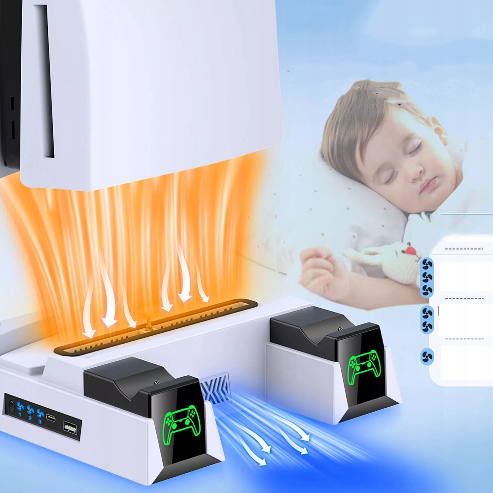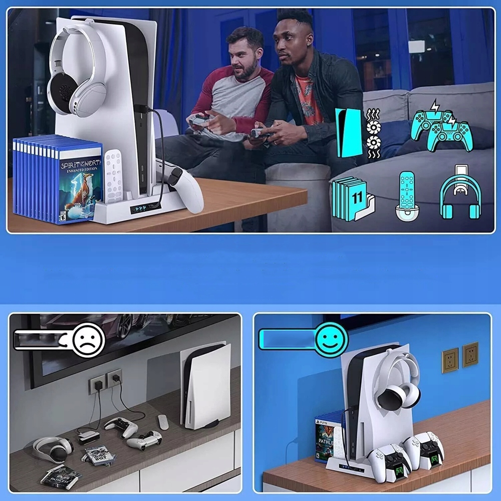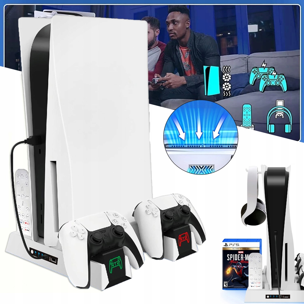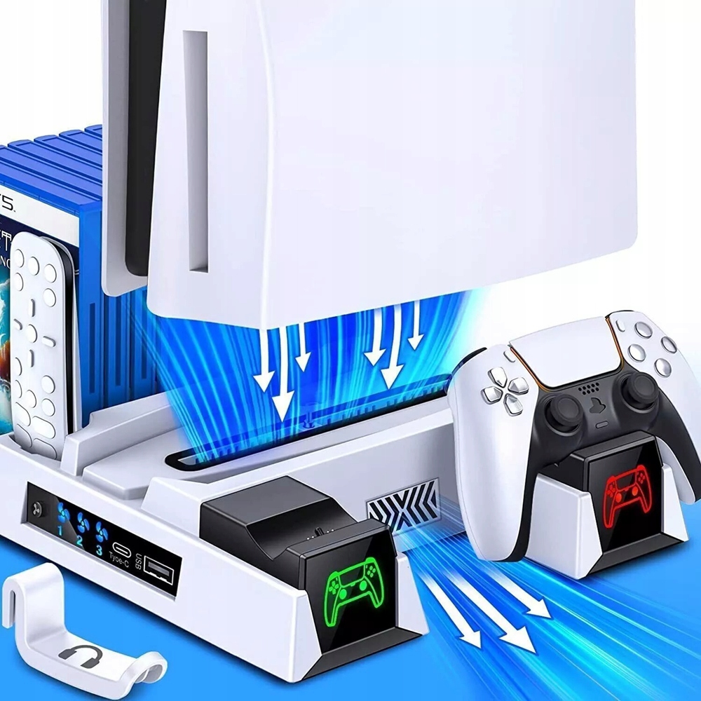 PIONOWY STOJAK NA WENTYLATOR PS5 PIONOWY UCHWYT PS5 Z UCHWYTEM NA SŁUCHAWKI