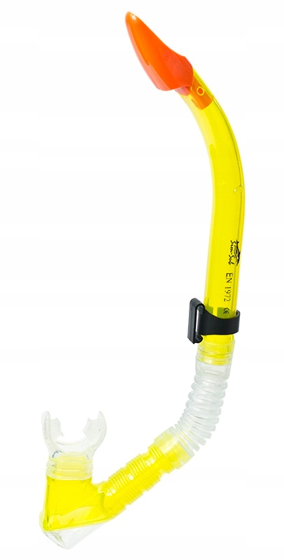 - Шноркель має мундштук, який добре вписується в рот, і нижній клапан, який запобігає потраплянню води рот. трубка.