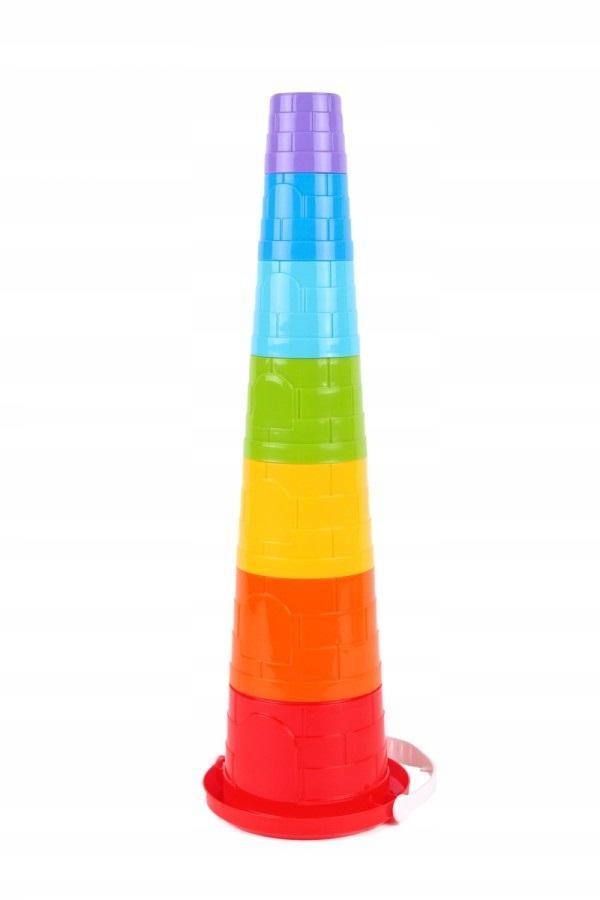 Зустріньте нові піраміди в кольорах веселки. Особливістю цієї іграшки є те, що всі форми можна поставити в кругле відро з ручкою. Тож легко перенести іграшку, взяти її на прогулянку, до пісочниці або до дитячого садка.