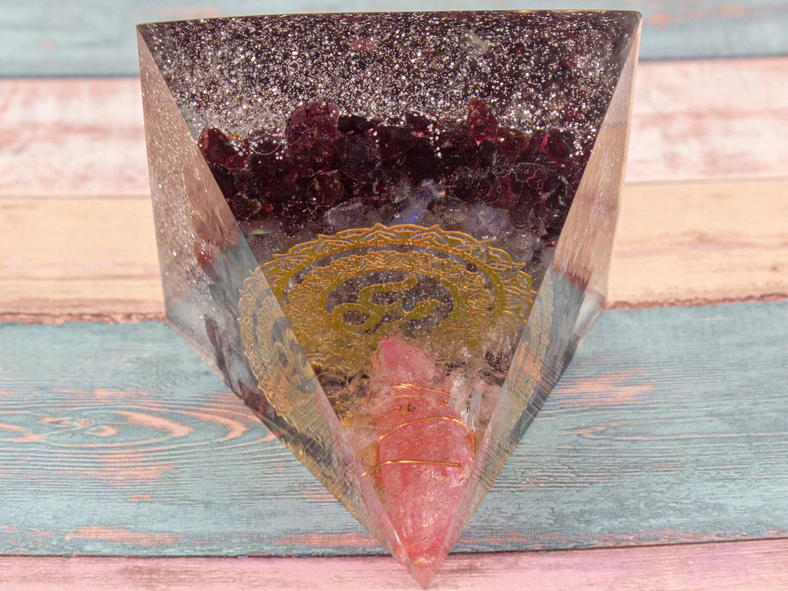 Відкрийте магію оргонітної піраміди, що приховує силу мінералів та містичний символ нескінченності ОМ. Прекрасна оргонітна піраміда з прекрасним виглядом та цікаво вибраними каменями та мінералами - це краща впевненість, кращі стосунки та дружби. Духовність
