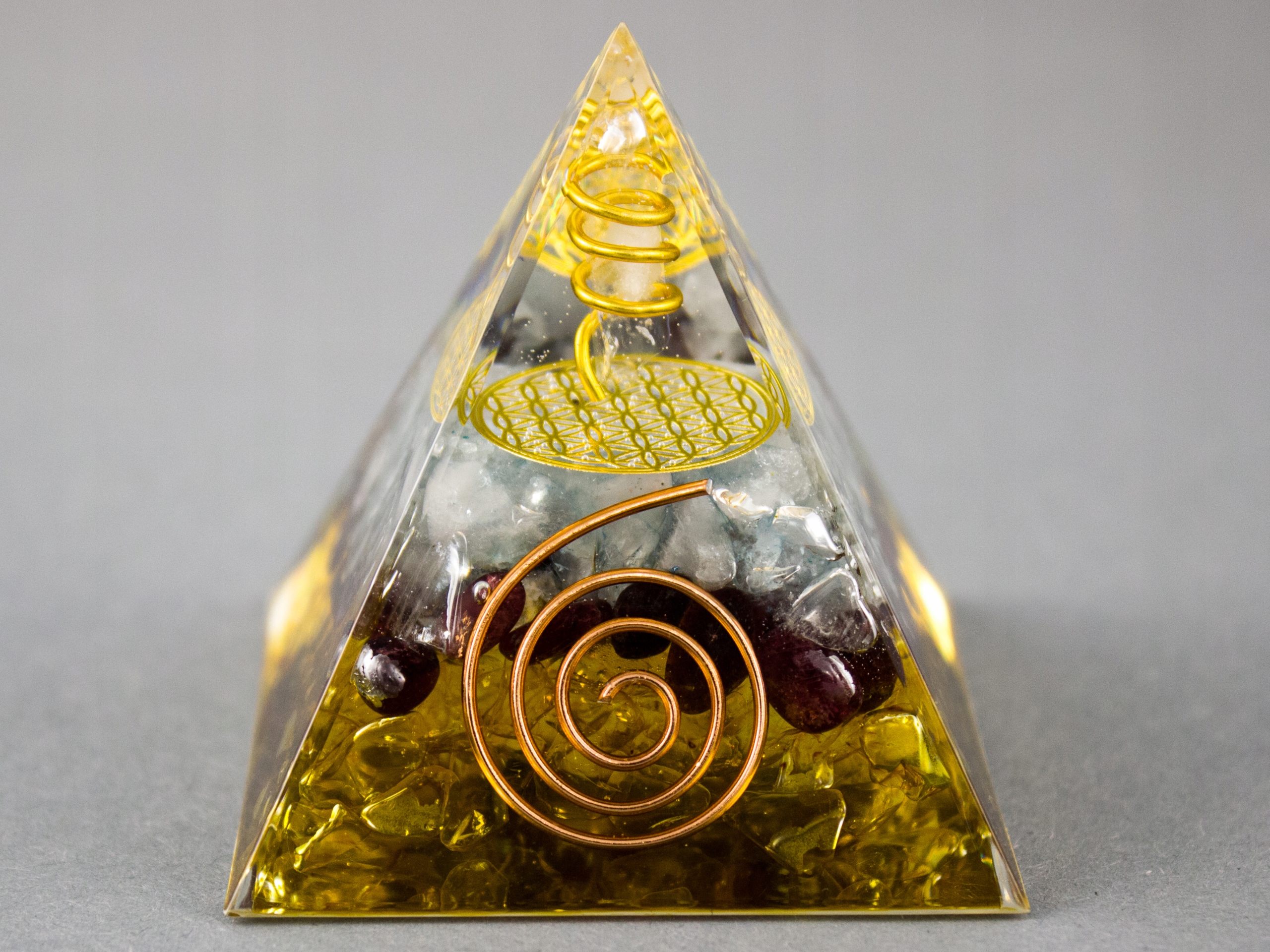 ПІРАМІДА ОРГОНІТ КАРНЕОЛ ЦИТРИН АМАЗОНІТ БІОЕНЕРГІЯ КВІТКА ЖИТТЯ ЧАКРА 5 см