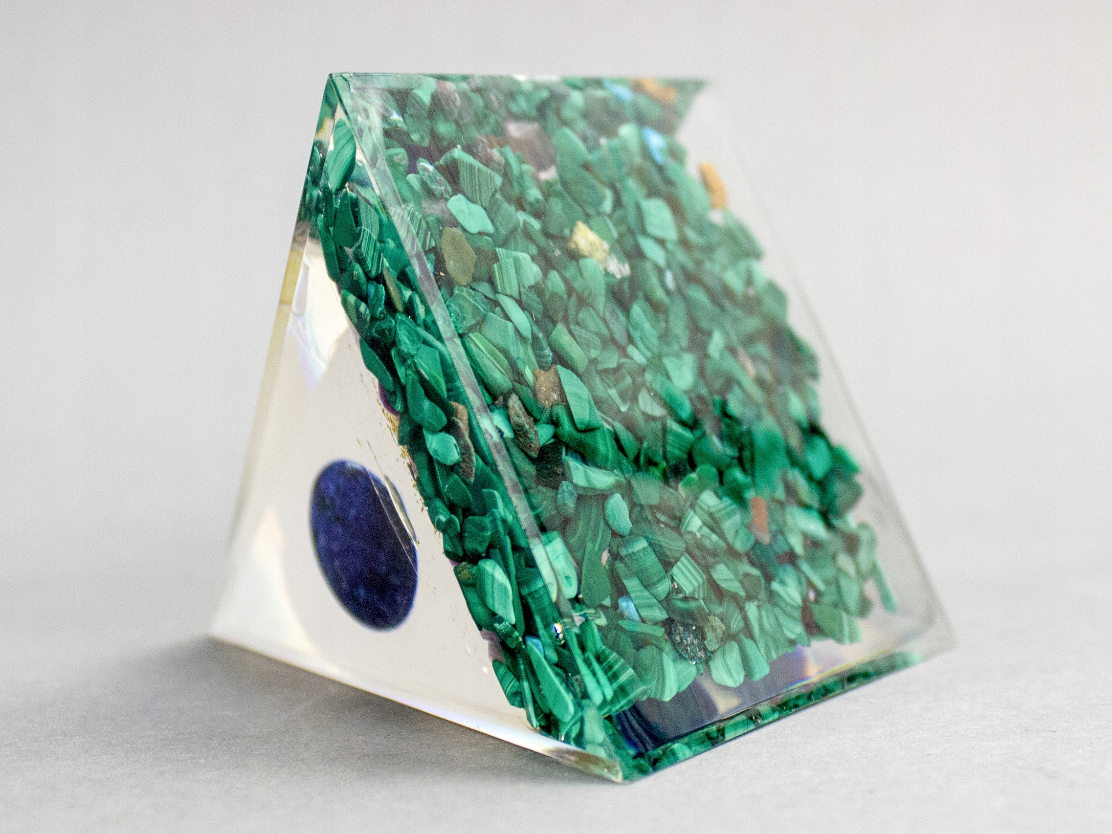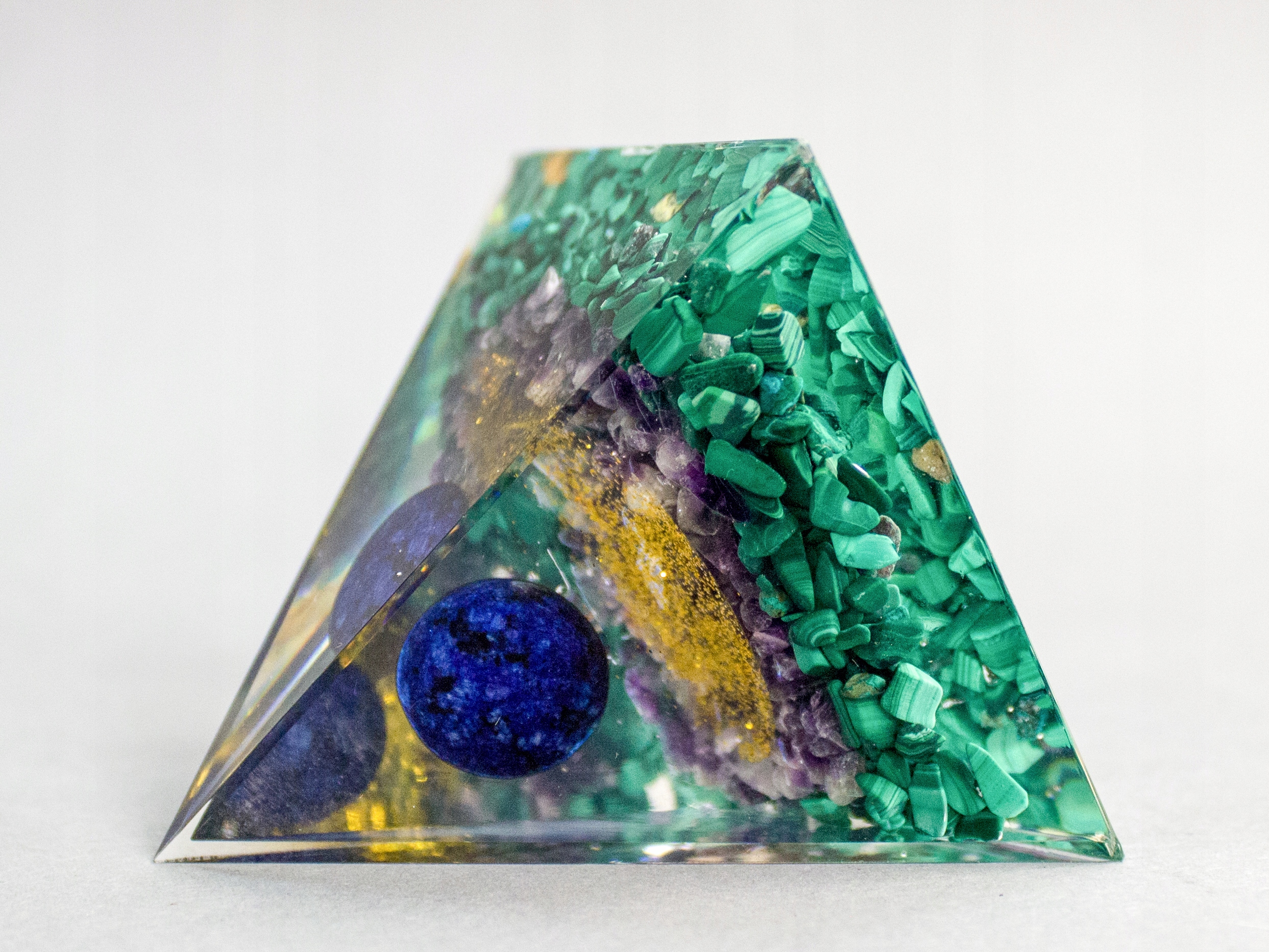 ПІРАМІДА ОРГОНІТ ЛАЗУРИТ ПОДАРУНОК МАЛАХІТОВА СМОЛА ЗОЛОТА ФОЛЬГА ЧАКРА 5 см