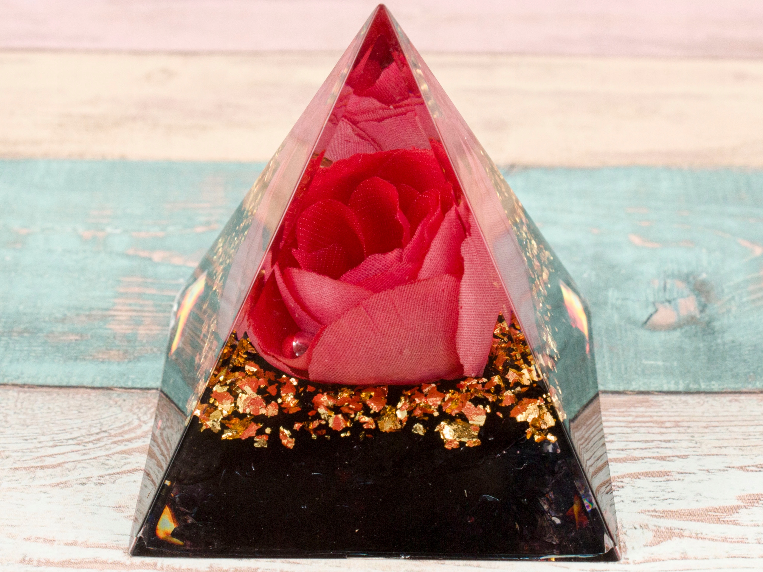 Піраміда Оргоніт Магія нічної та пожежної обсидіанської червоної троянди 5см Читати опис