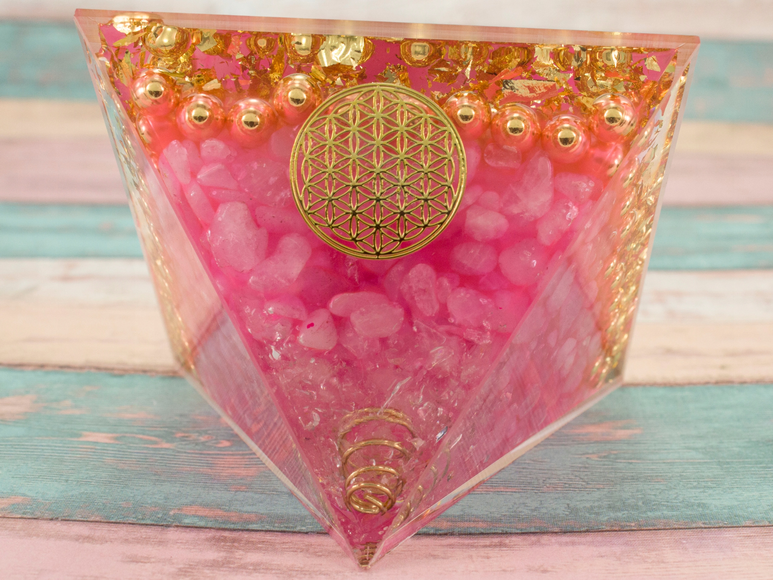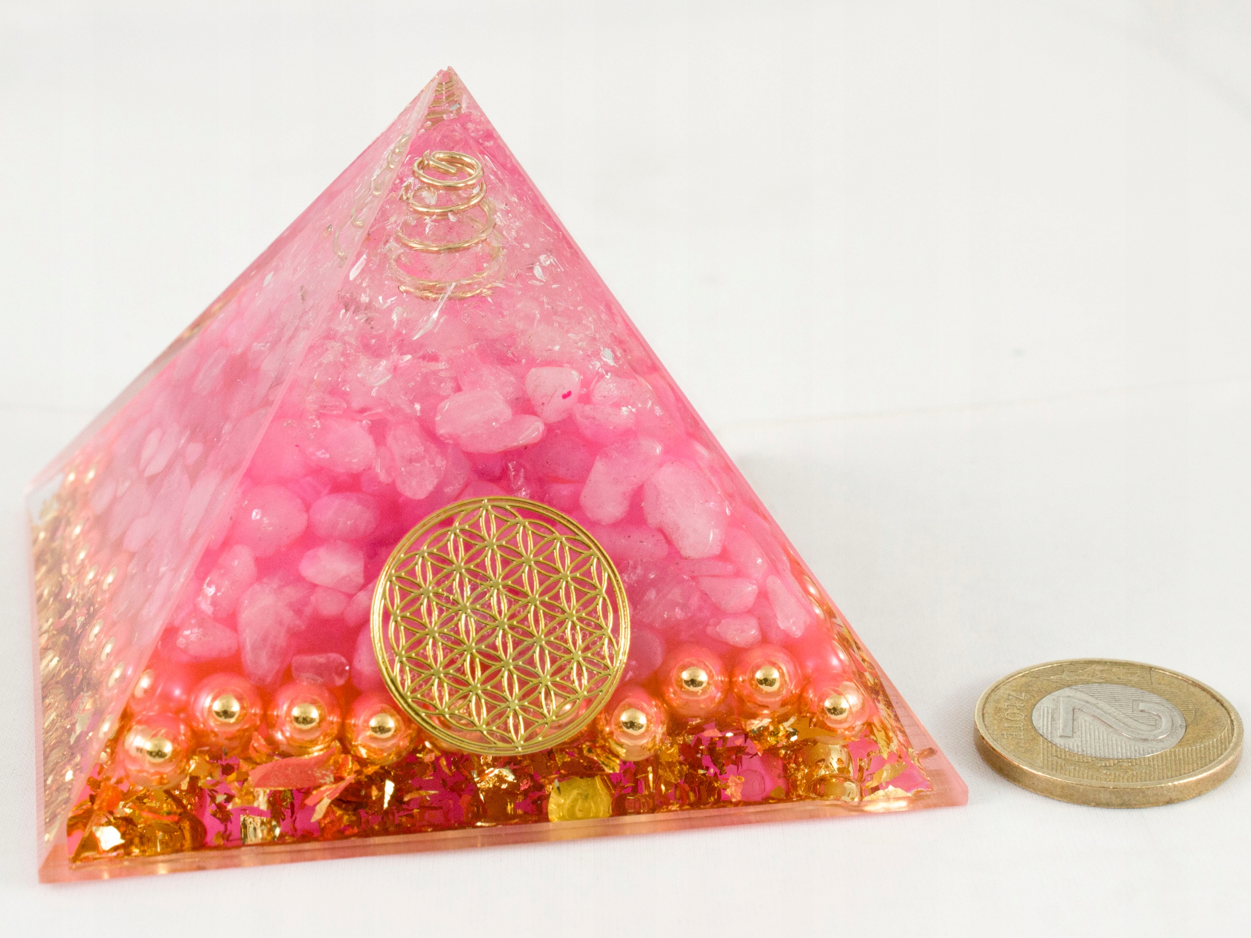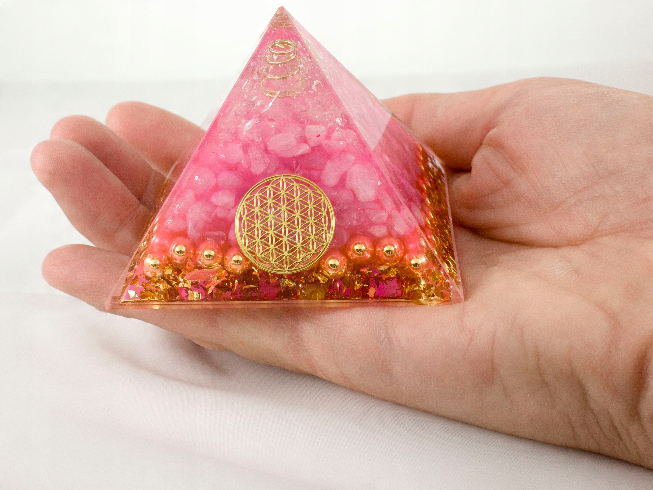 ПІРАМІДА ОРГОНІТ ПІРАМІДА РОЖЕВИЙ КРИСТАЛ КВІТА ЖИТТЯ ГАРМОНІЗАЦІЯ 7*5см