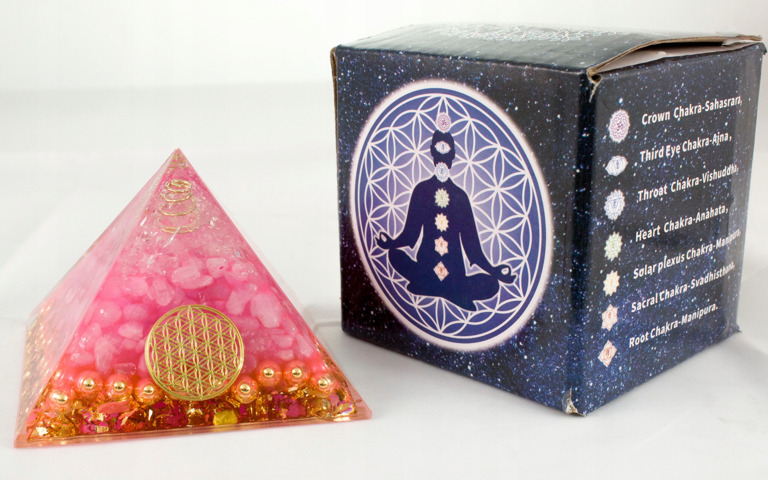 Ця піраміда благотворно впливає на кожну із семи чакр, а завдяки каменям і мінералам, які не тільки виглядають красиво, але й мають власну силу, енергію та зцілення, вони посилюють цінний ефект очищення та розблокування чакр, що приносить добро, щастя, здоров’я.