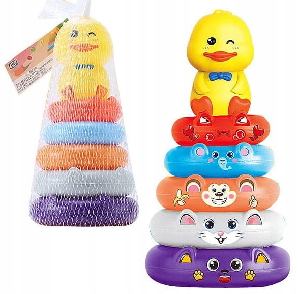 Розкладаючи диски один за одним, малюк тренує спритність своїх ручок і стимулює цікавість.