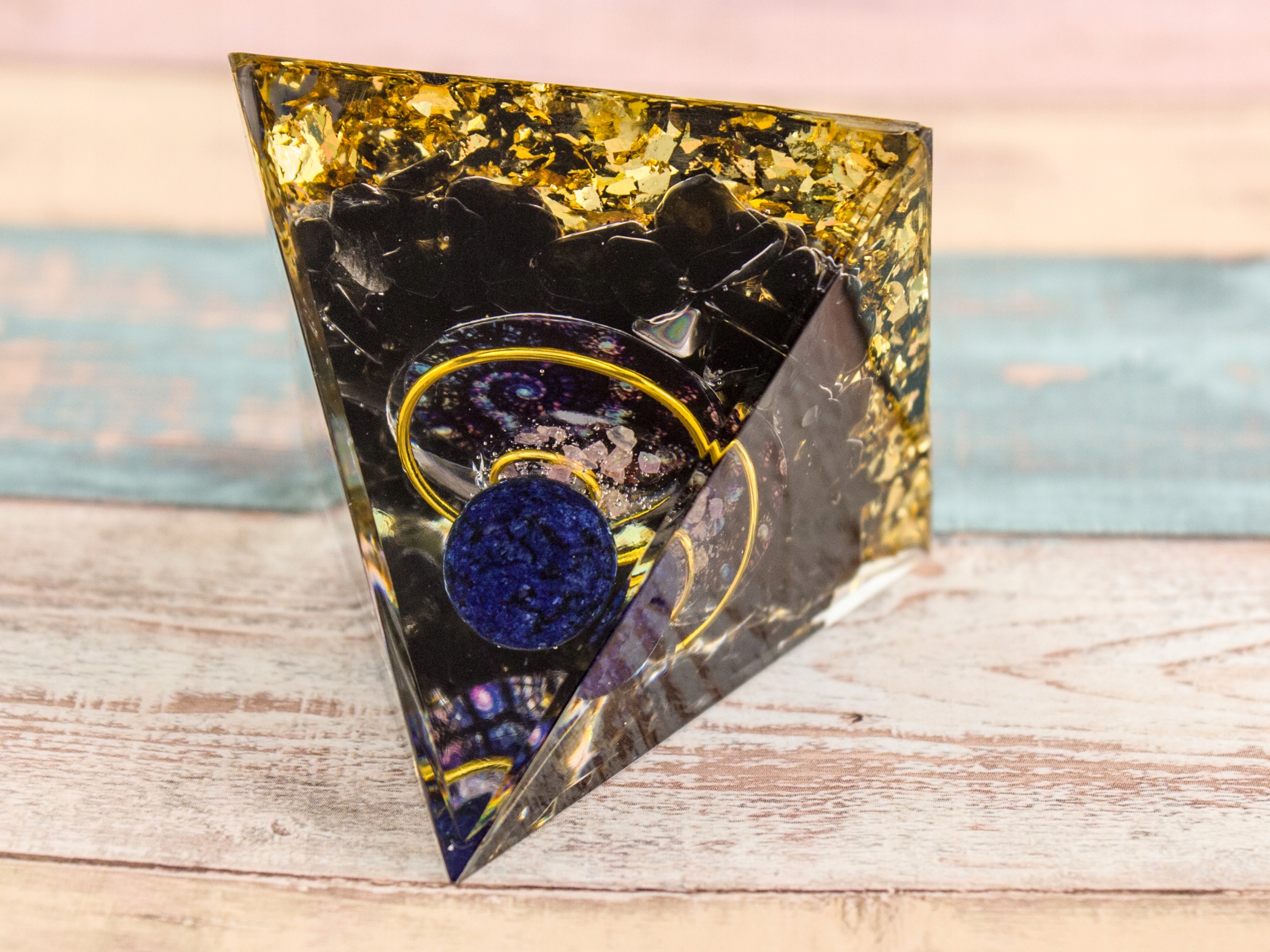 ПІРАМІДА ОРГОНІТ ЛАЗУРИТ ОБСИДІАН КРИСТАЛ РОЗОВИЙ КВАРЦ ГАРМОНІЗАЦІЯ 5 см