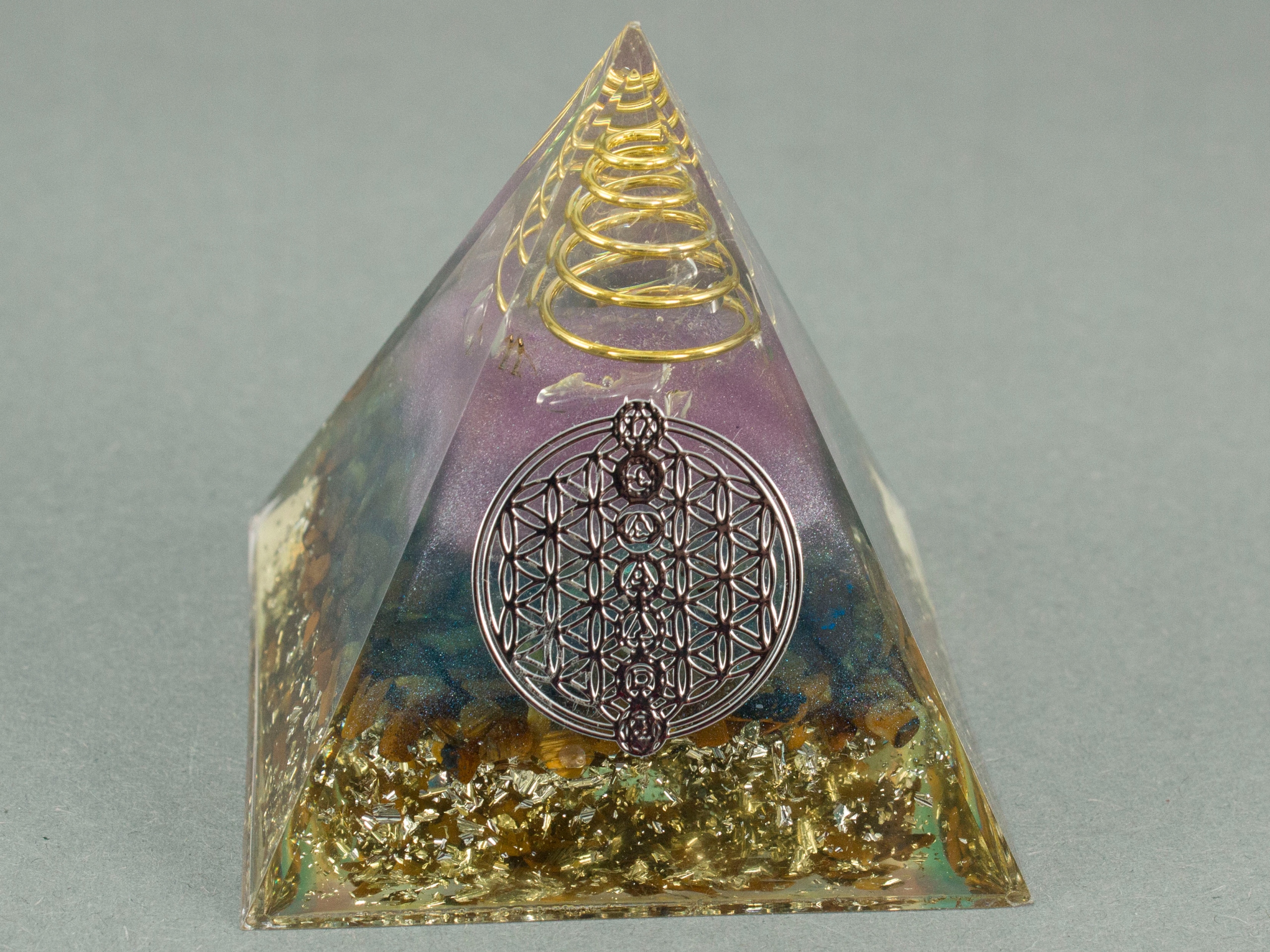 Ця піраміда сприятливо впливає на кожну з семи чакр , і завдяки каменям, мінералам, які не тільки виглядають красиво, але й мають власну владу, енергію та зцілення, збільшують цінний вплив очищення та розблокування чакри, приносячи добре, щастя, здоров'я.