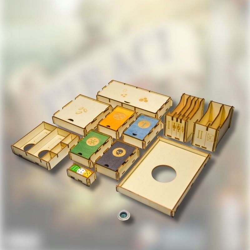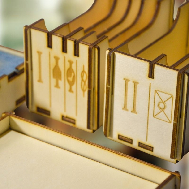 Виготовлена з фанери найвищої якості, вставка характеризується довговічністю і точністю виконання. Кожен елемент ретельно вирізаний, а гладкі краї роблять його безпечним і приємним у використанні. Це рішення створено для зручності гравців, які цінують естетику та порядок. Вкладиш не тільки підвищує комфорт гри, але також може стати чудовим подарунком для будь-якого фаната настільних ігор.