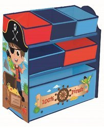 Красива скриня для дітей, яка має 6 тканинних контейнерів різного розміру. Стійка і високоякісна структура деревини забезпечує її тривалому життя. Бічні стіни з піратським мотивом. Красиві прозорі фарби. Призначений для дітей віком від 3 років. Складання вимагає викрутки.
