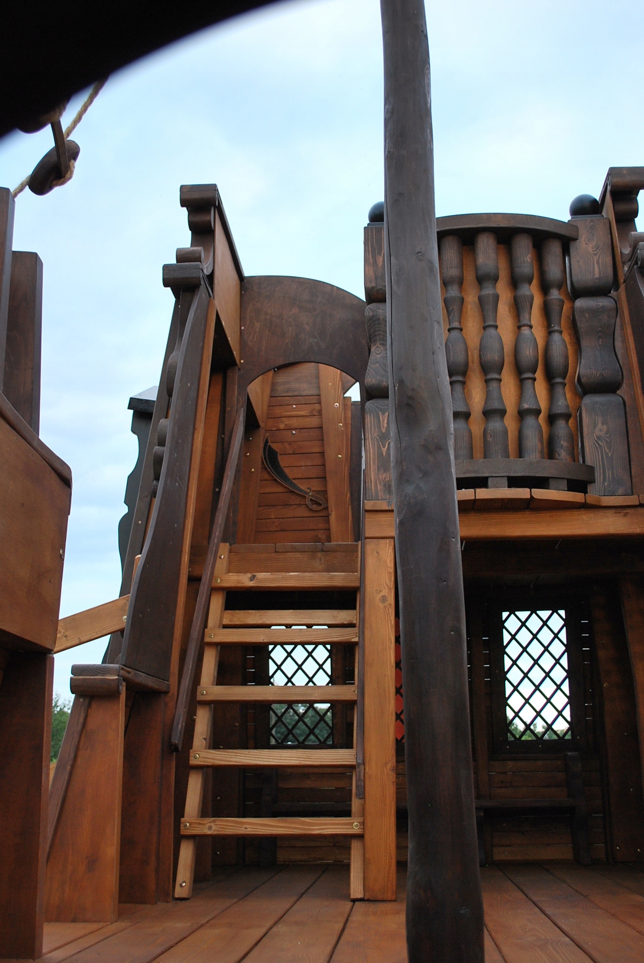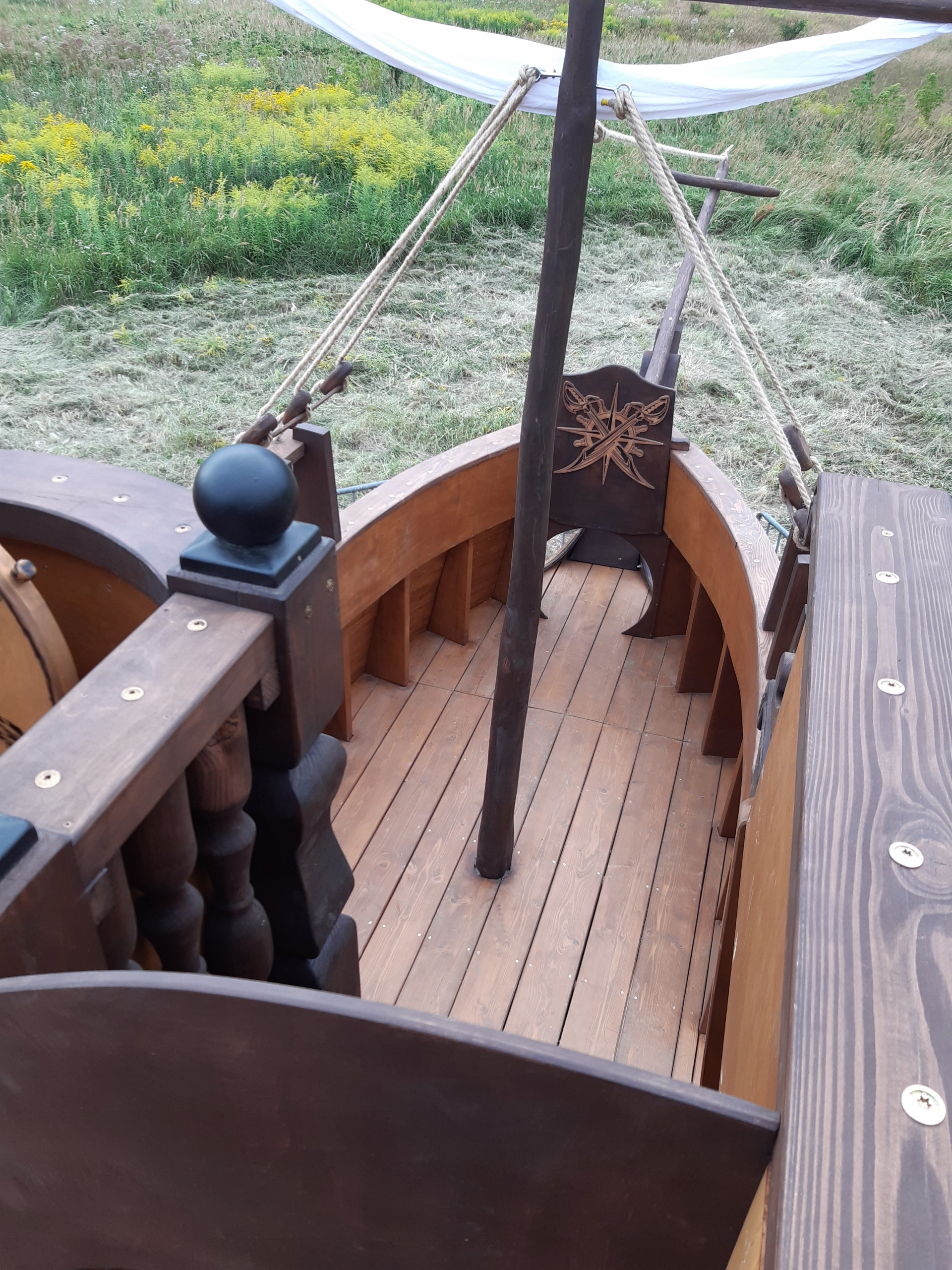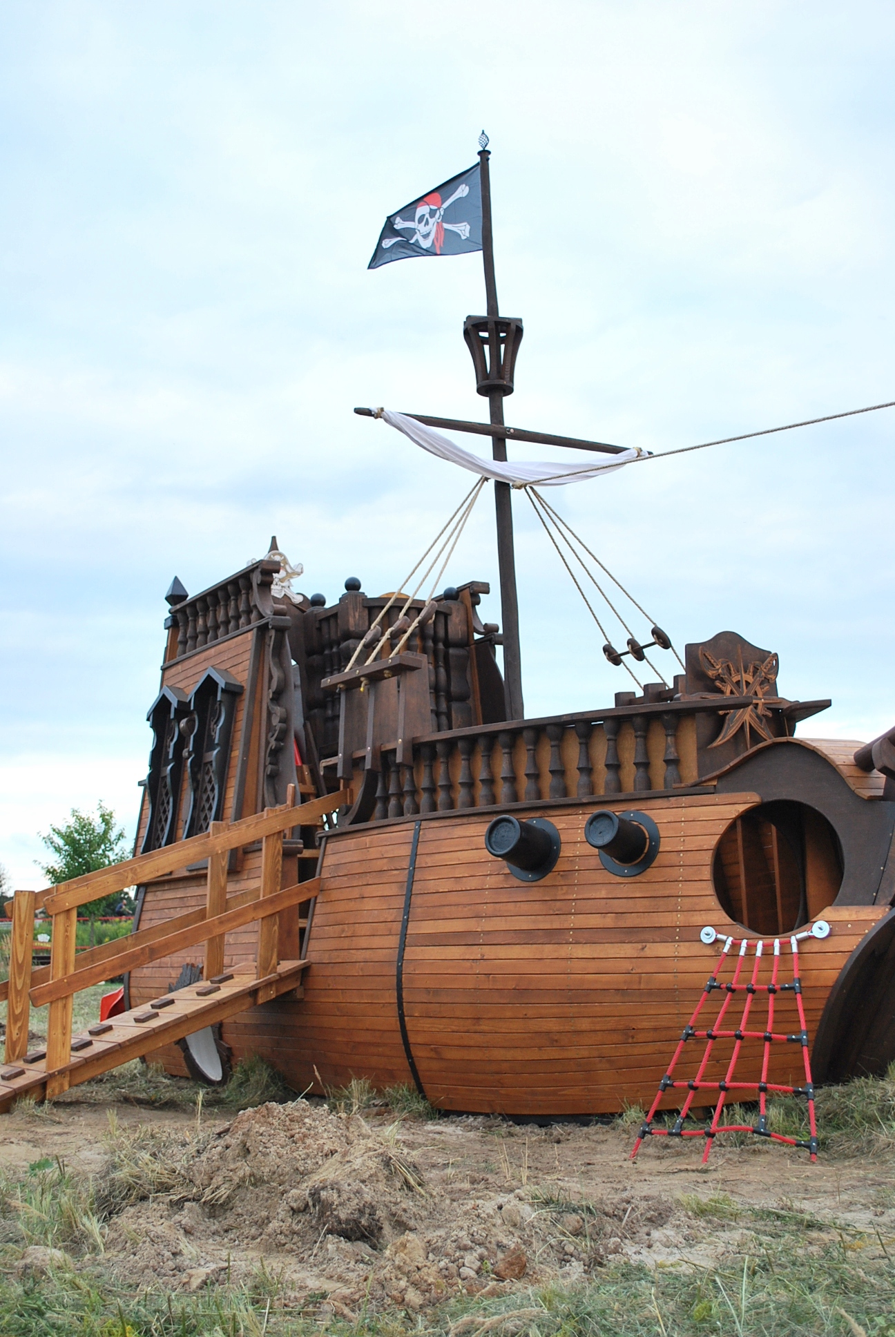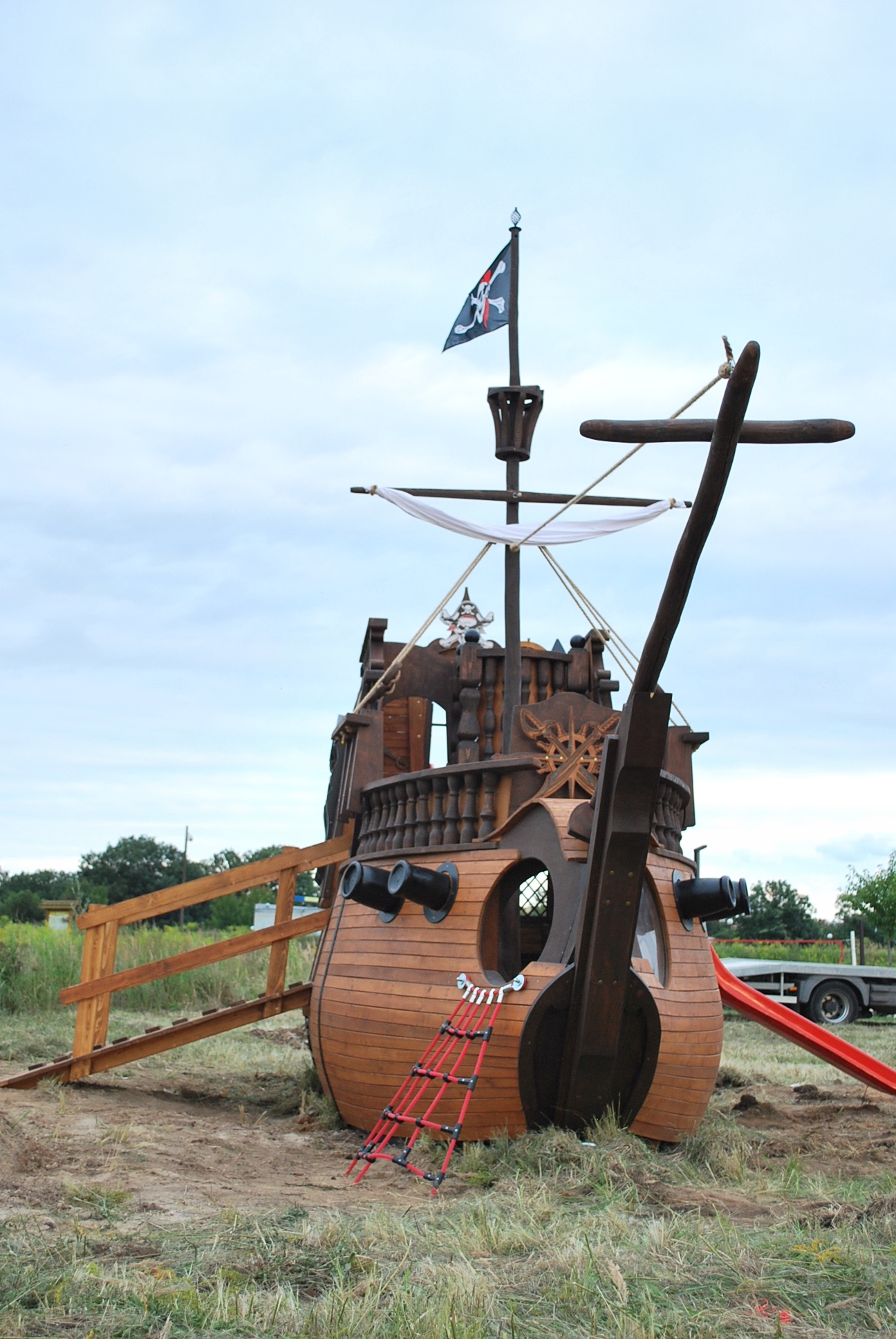 - розміри піратського корабля: ширина 2,5 м; довжина 9м з гойдалками; висота рульової рубки приблизно 4 м, висота щогли 5,5 м