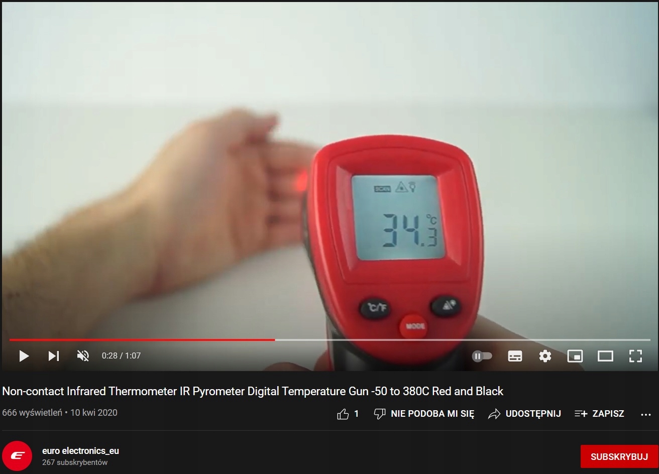 Оплачивая «ПИРОМЕТР БЕСКОНТАКТНЫЙ ЛАЗЕРНЫЙ ТЕРМОМЕТР -50 +380», вы можете быть уверены, что данный товар из каталога «Пирометры» будет доставлен из Польши и проверен на целостность. В цене товара, указанной на сайте, учтена доставка из Польши. Внимание!!! Товары для Евросоюза, согласно законодательству стран Евросоюза, могут отличаться упаковкой или наполнением.